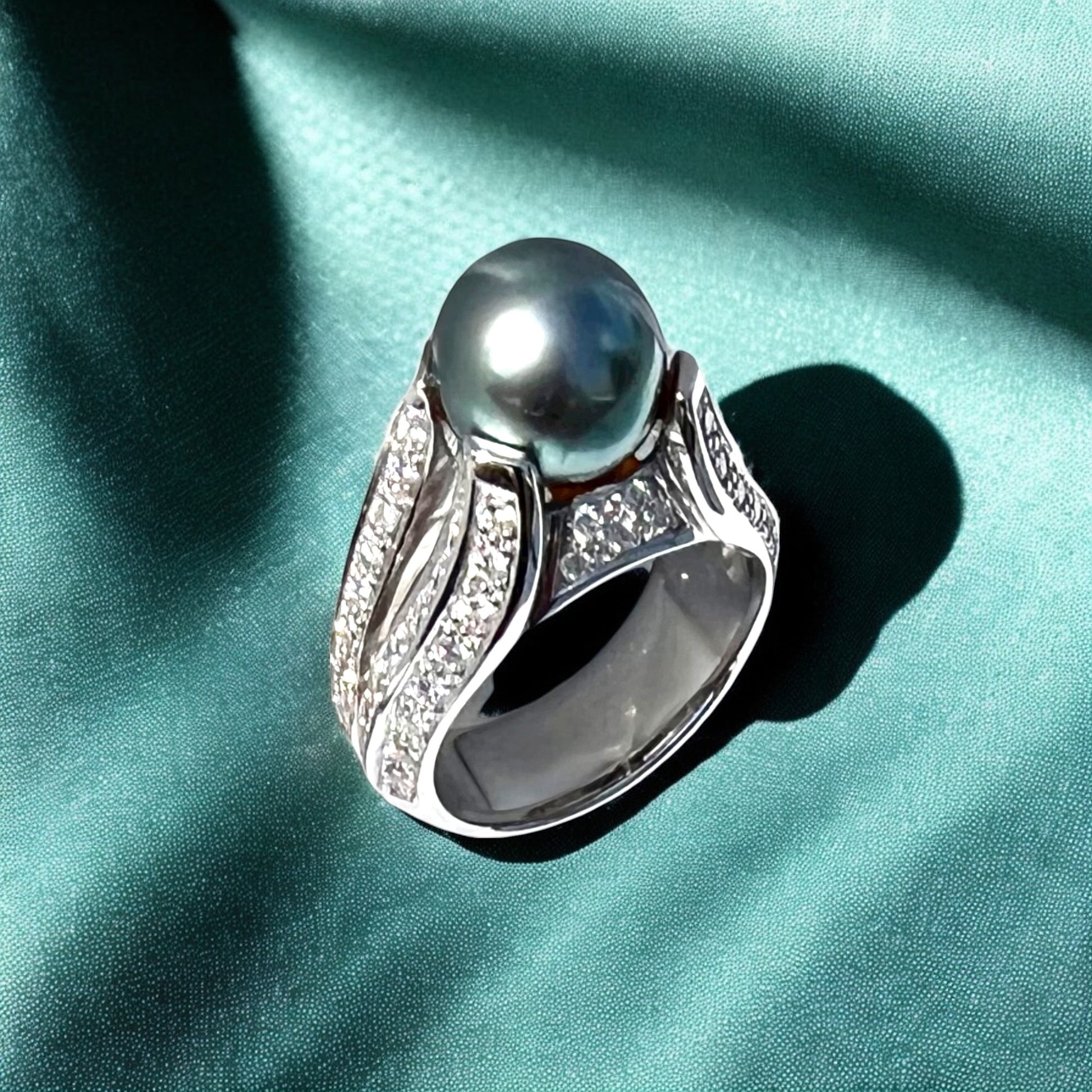 18k White Gold Ring Tahiti pearl & diamonds NEW