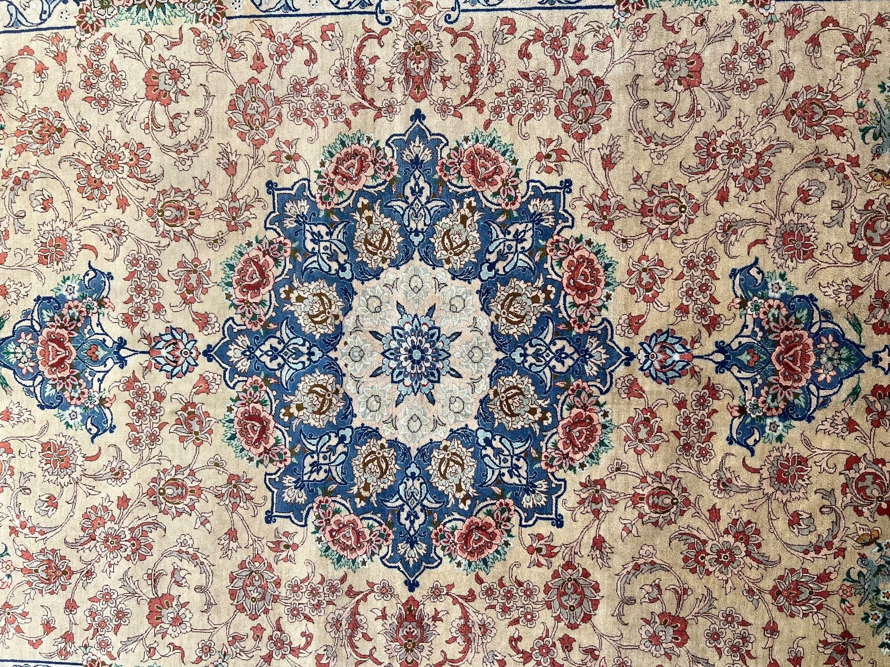 Ancient Ghom silk carpet/ tapis/ teppich, signed Erami