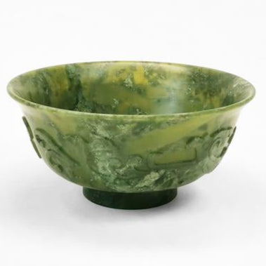 Antique jade bowl with slight relief pattern, D 20.5 cm, China