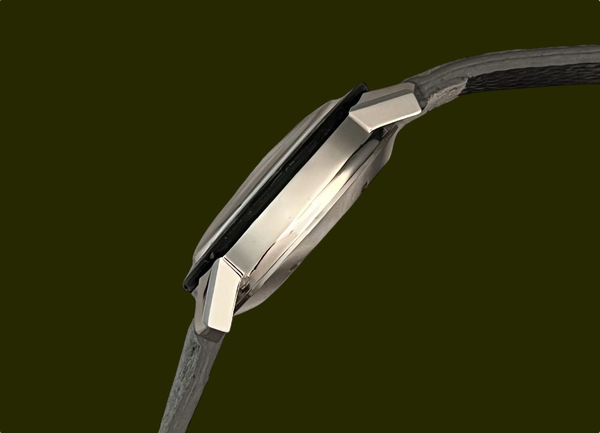 Strap: New light-grey suede leather band (aftermarket), complements the watch’s vintage character