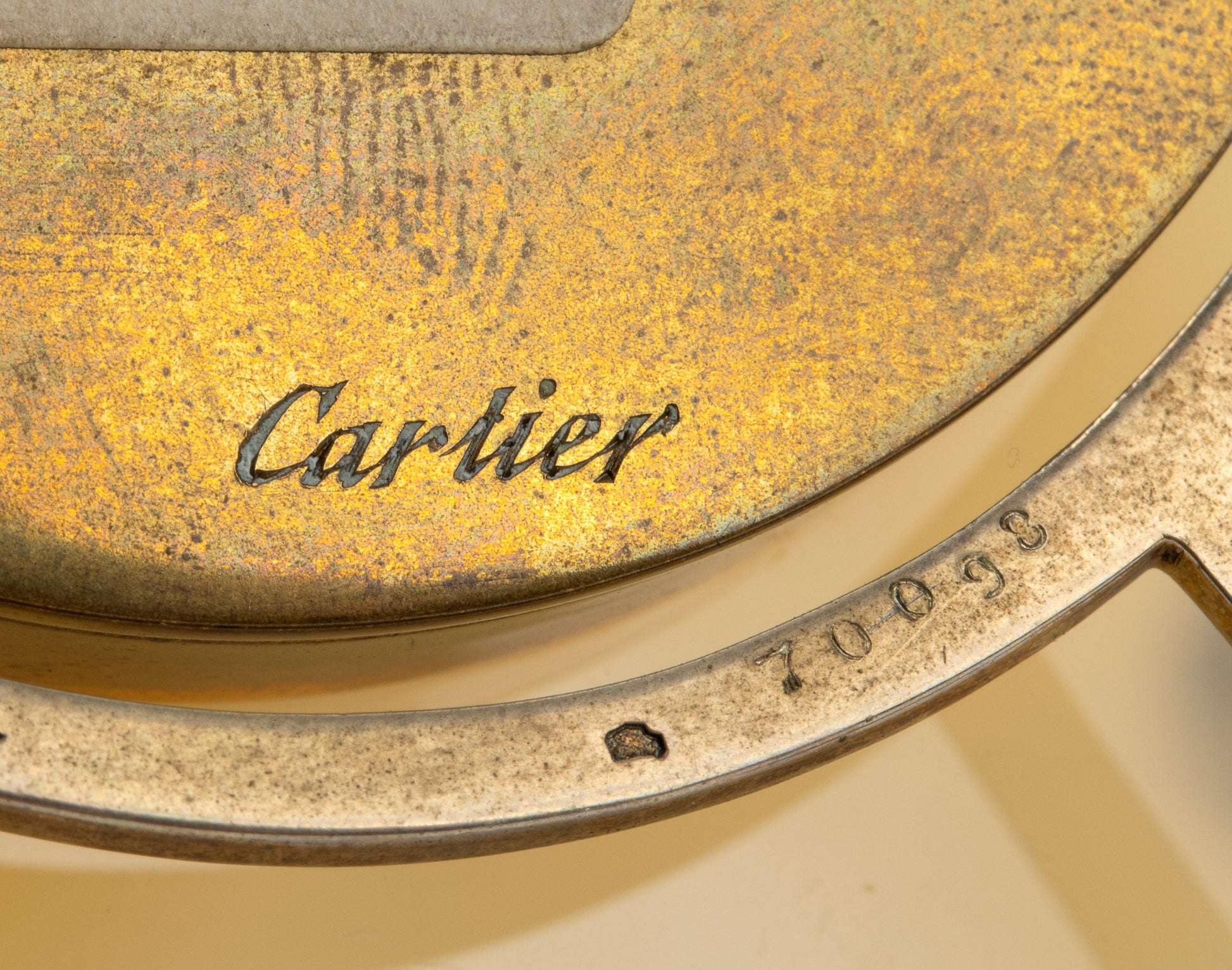 Hallmarked with the "Boar's Head" mark, a small guarantee for silver objects used in France from 1838, along with the silversmith's mark in a lozenge shape. On the back of the case, the signature "Cartier".