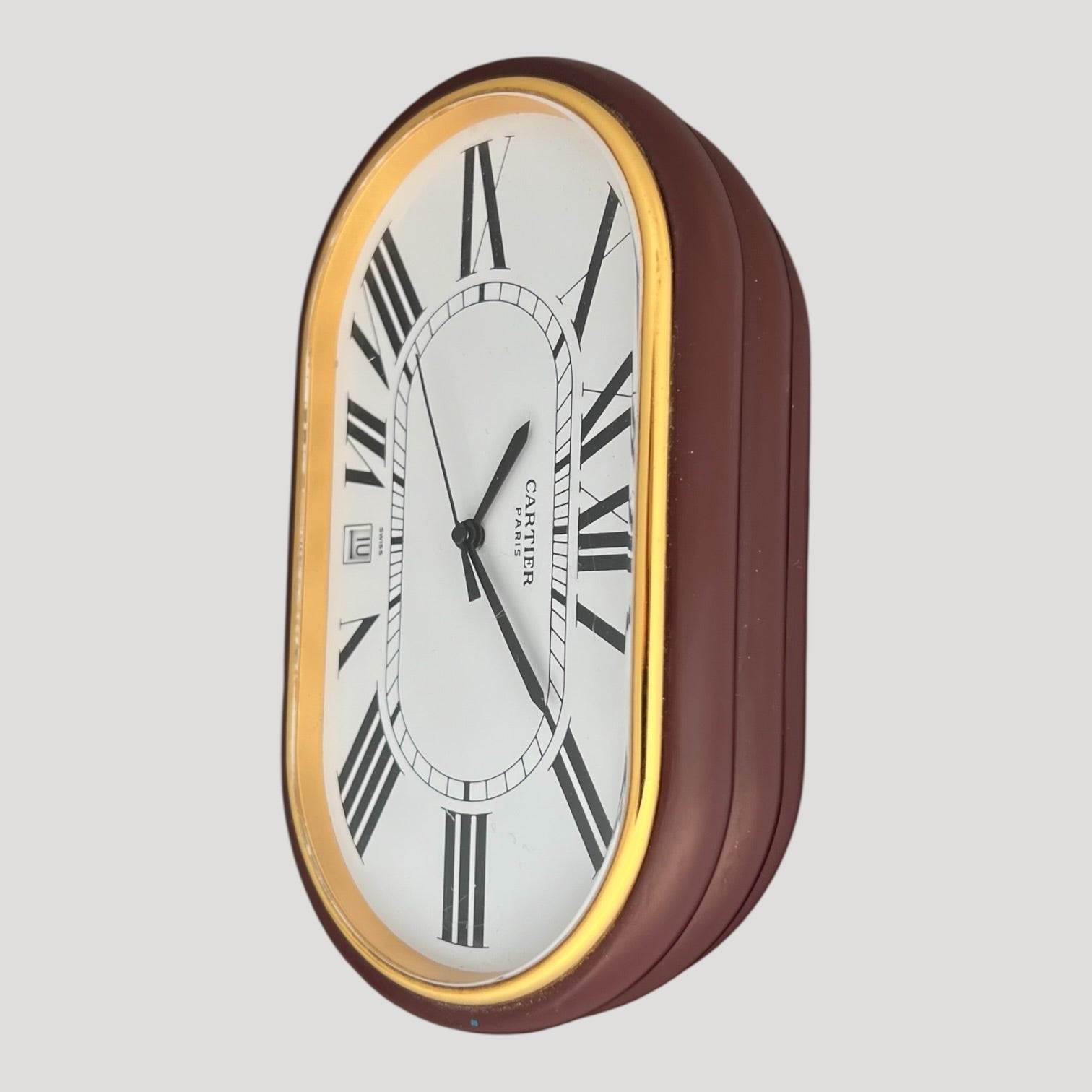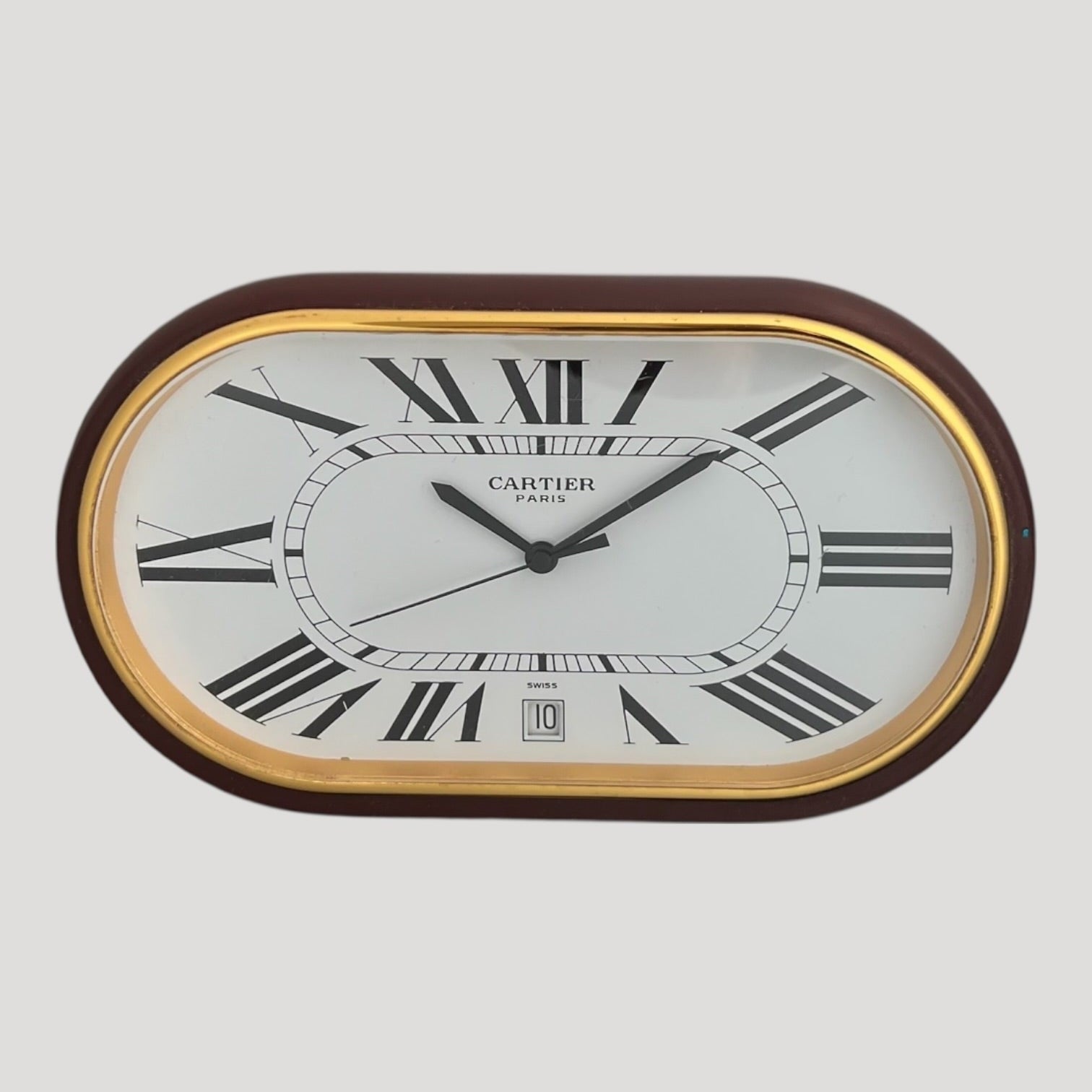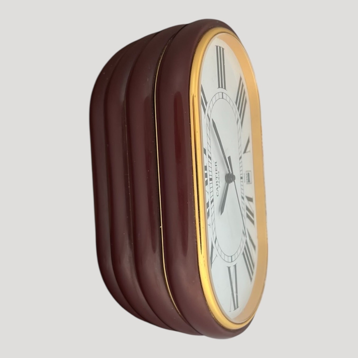 Cartier Burgundy 'Accordion' Desk Clock/ Pendulette Date Rare