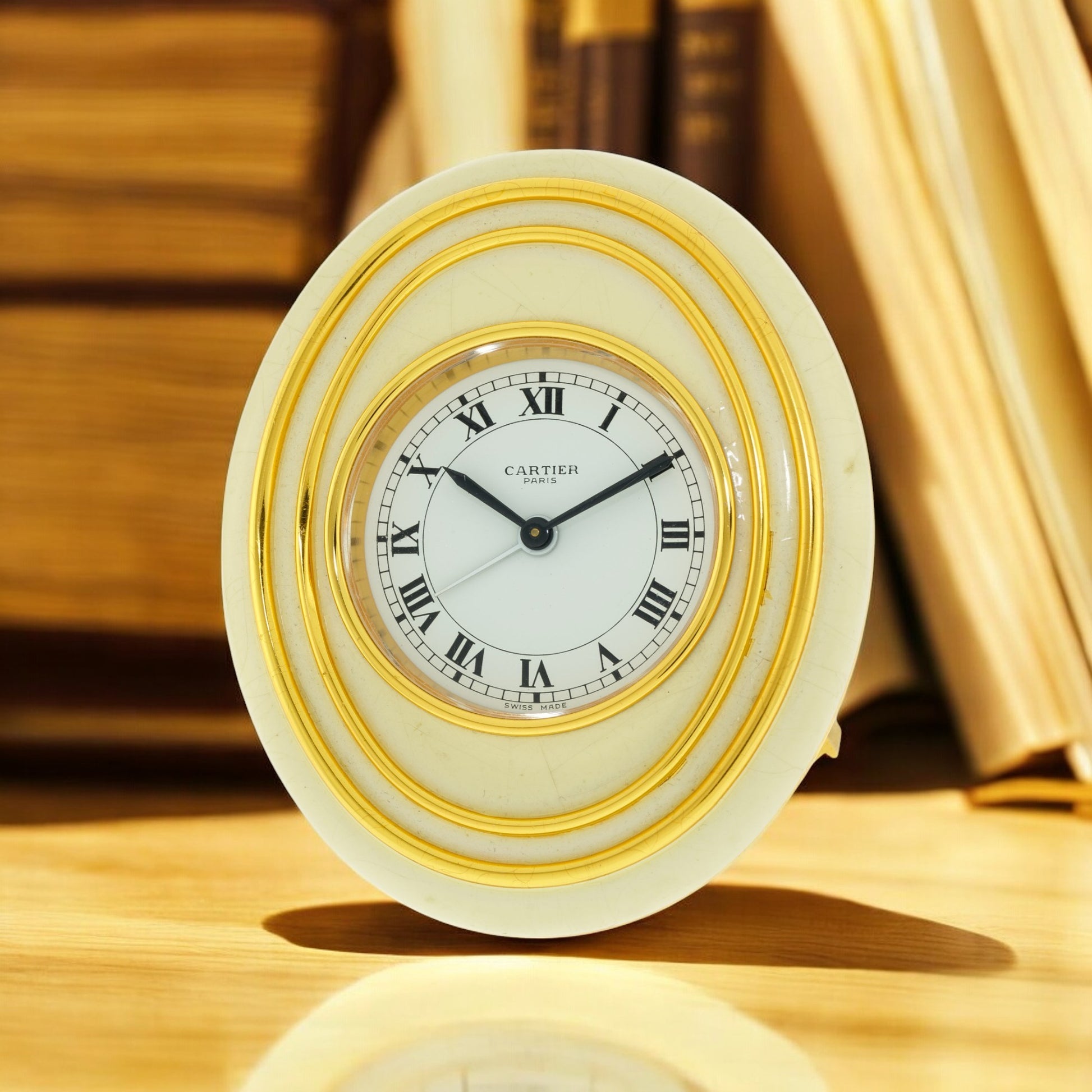 Cartier Ref. 7511, Gilt metal and resin Alarm Table Clock 1980'