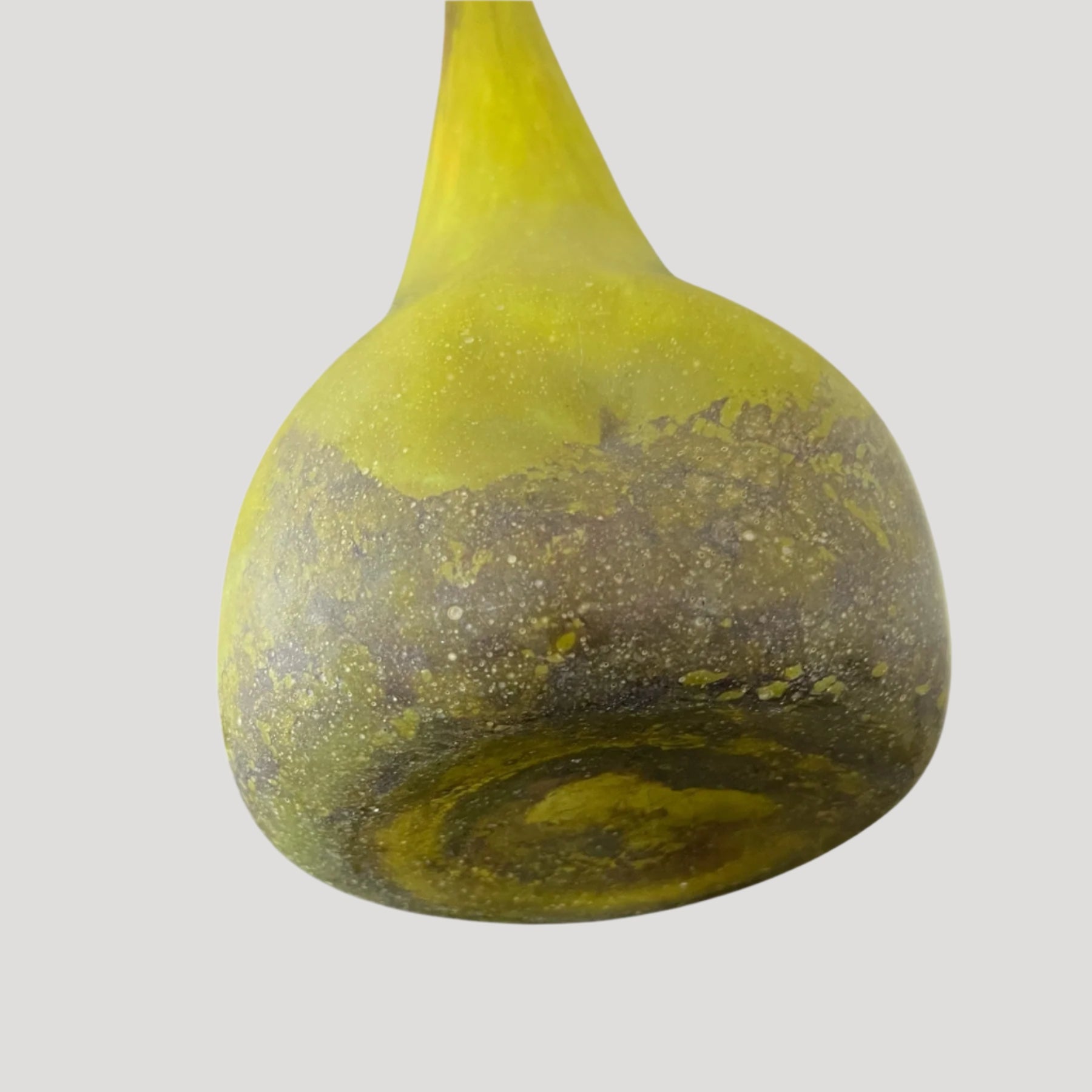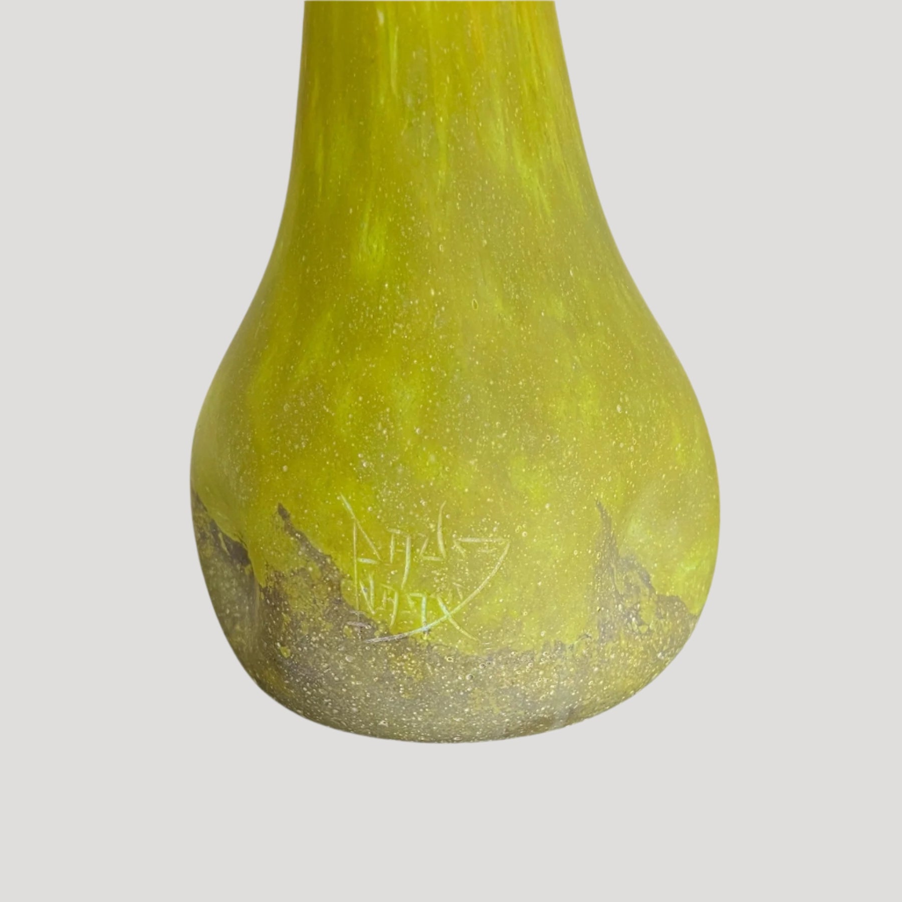 Beautiful long neck glass vase signed Daum Nancy, circa 1900, with green background.