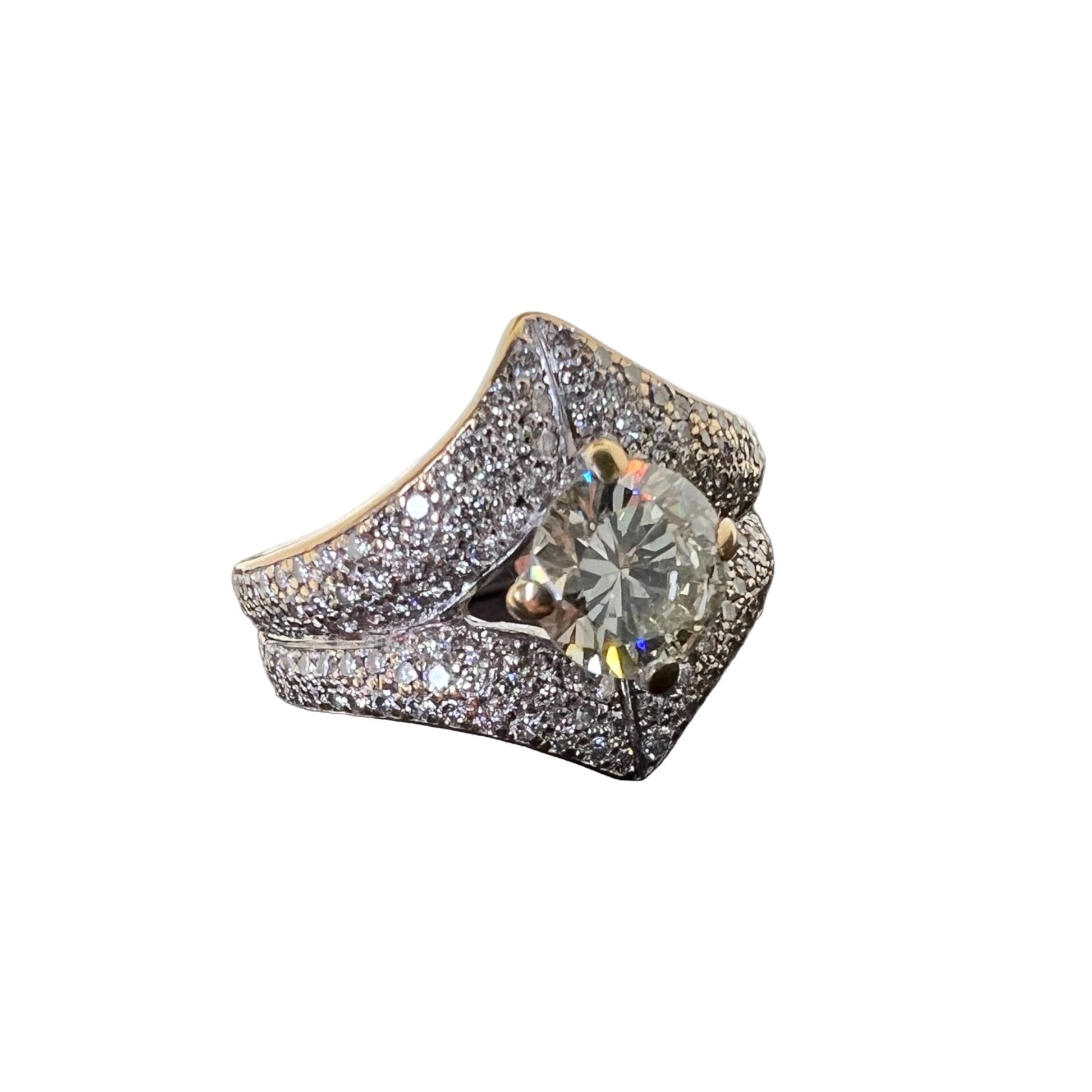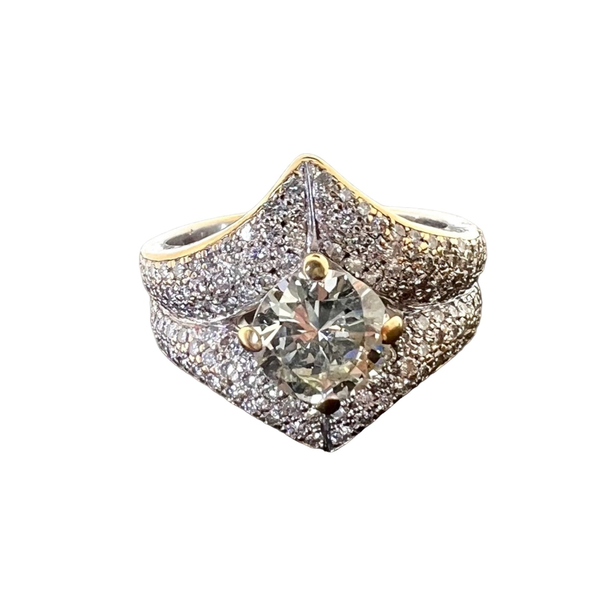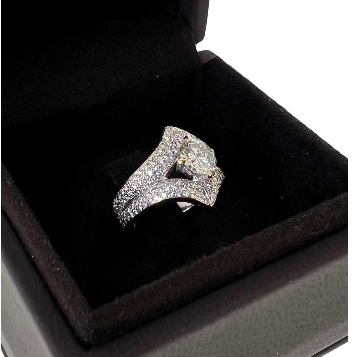 Design White Gold Ring paved with ca. 180 Diamonds centered by a ca.1 kt Diamond