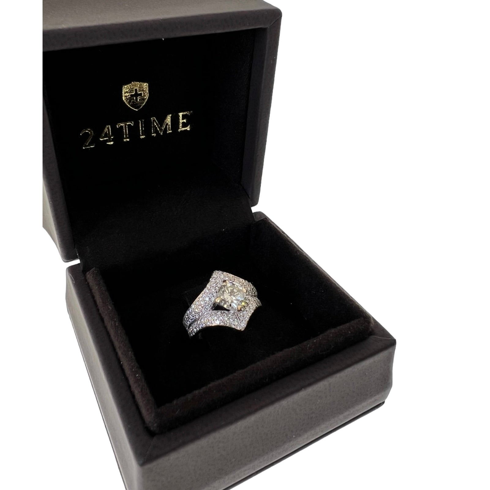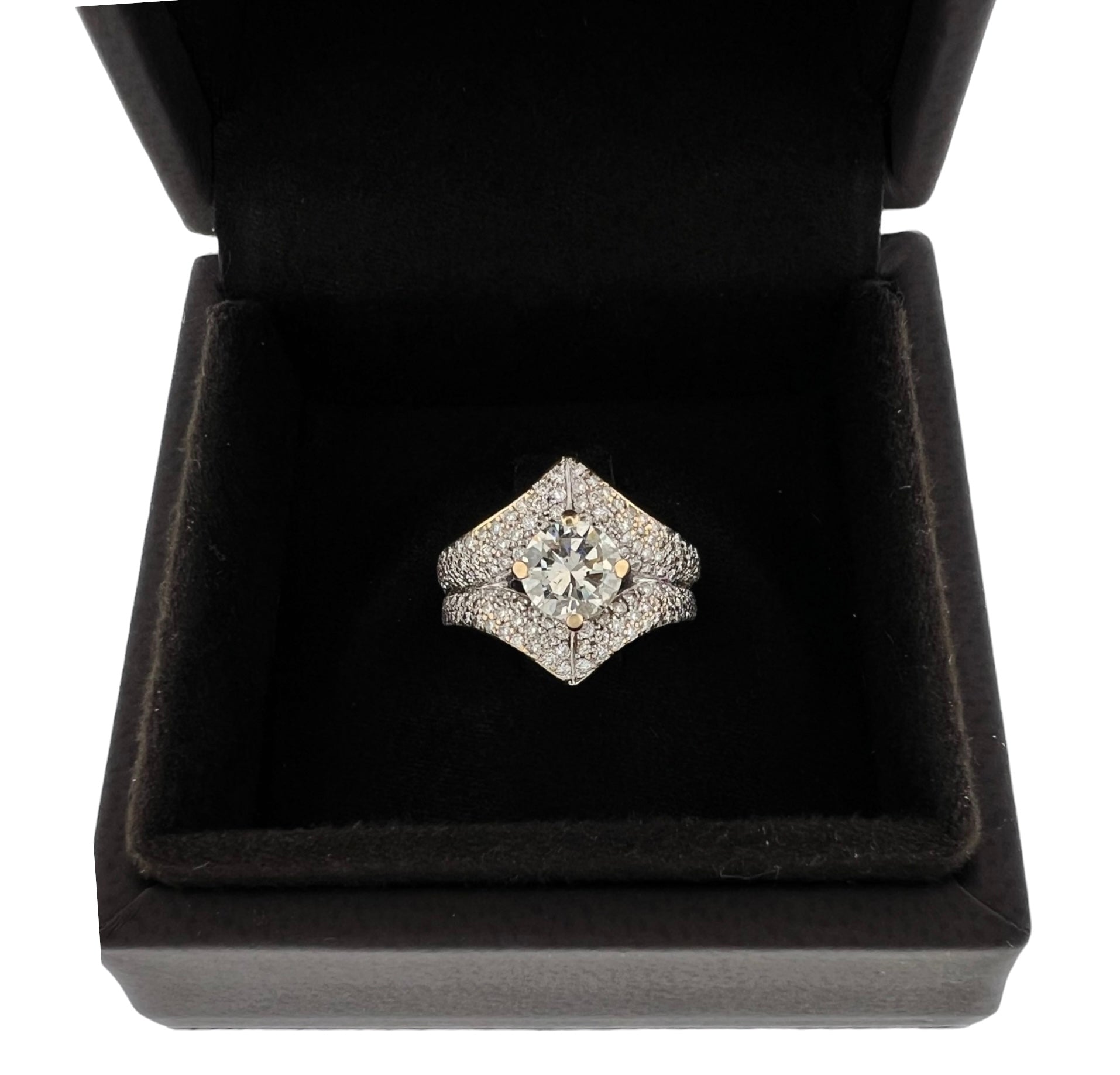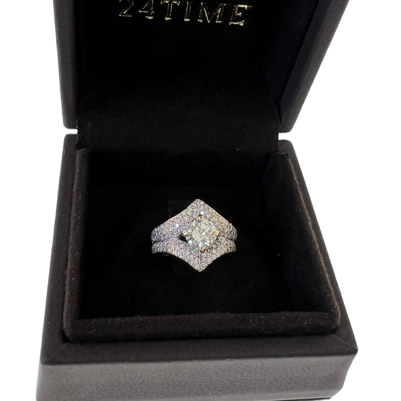Design White Gold Ring paved with ca. 180 Diamonds centered by a ca.1 kt Diamond