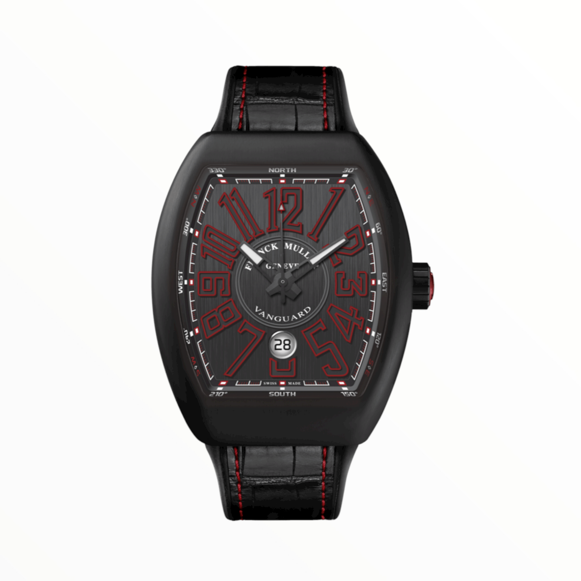 Distinguished by a sporty tonneau shape, the Vanguard™ calls in for clean and futuristic aesthetics with a one-of-a kind design. With refined taste, inserts on both sides of the case tastefully match the color on the numerals and strap for utmost elegance and style. The strap is cleverly integrated inside the case in order to maintain and extend the curved aspect of the timepiece, the result being a stunning timepiece with a unique design.