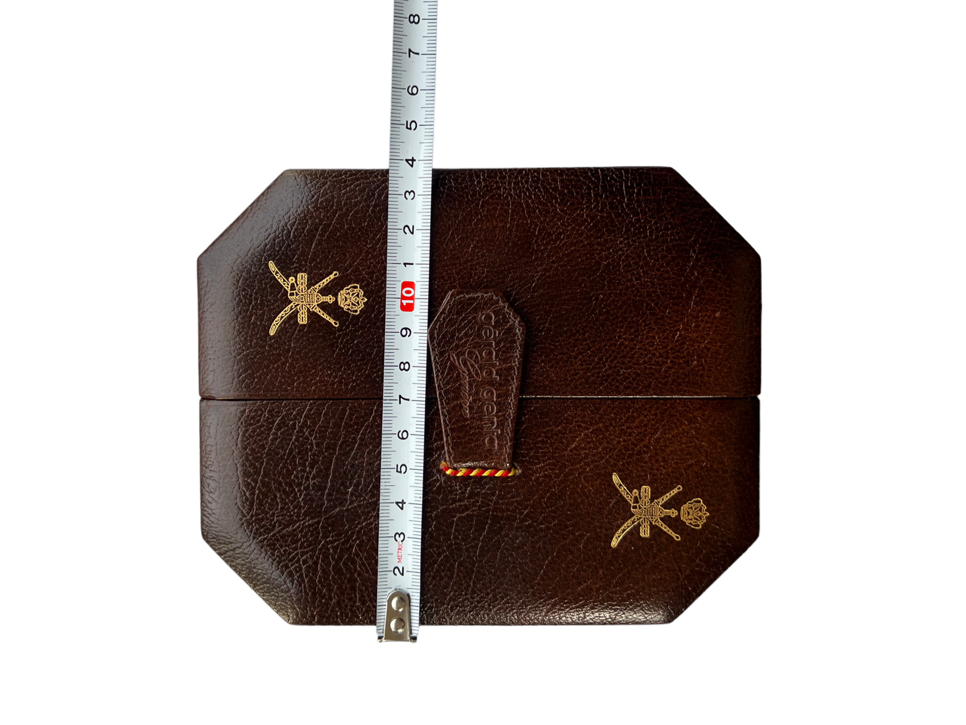 A fine and rare, Limited Edition Gerald Genta luxury box in leather, 'L'esprit de Genève', with Oman Khanjar (crest of the Omani royal family) and crown