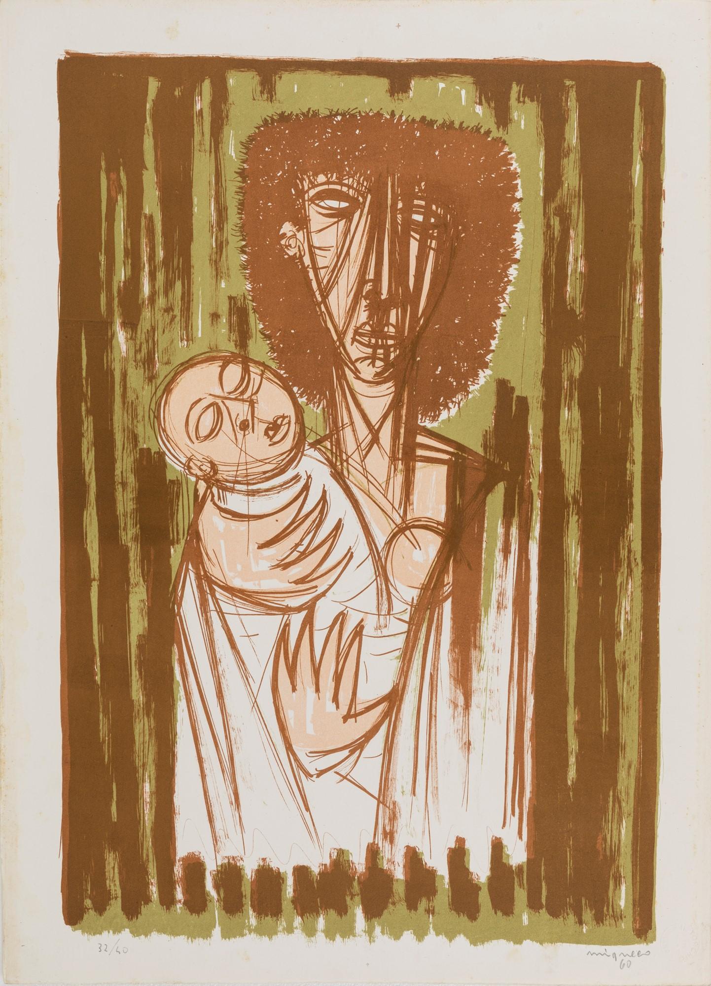 Giuseppe Migneco (1908–1997) was an influential Italian painter associated with the Corrente movement, which emerged in Milan in the 1930s. Known for his expressive, figurative style and use of vivid colors, Migneco's work often focused on themes of human struggle, labor, and the lives of ordinary people, particularly from Sicily, where he was born.