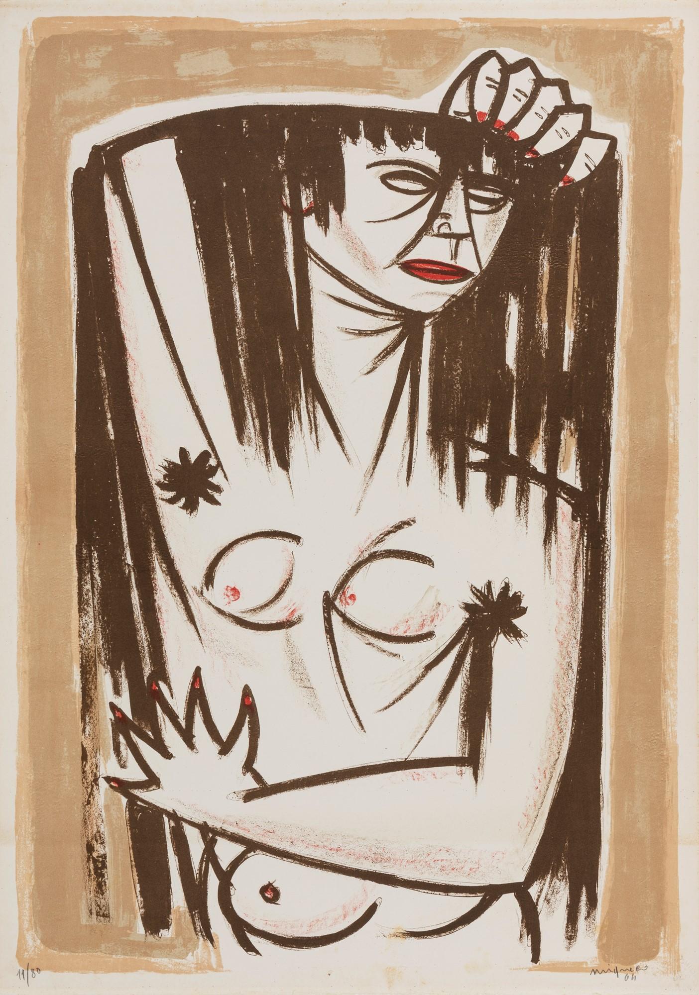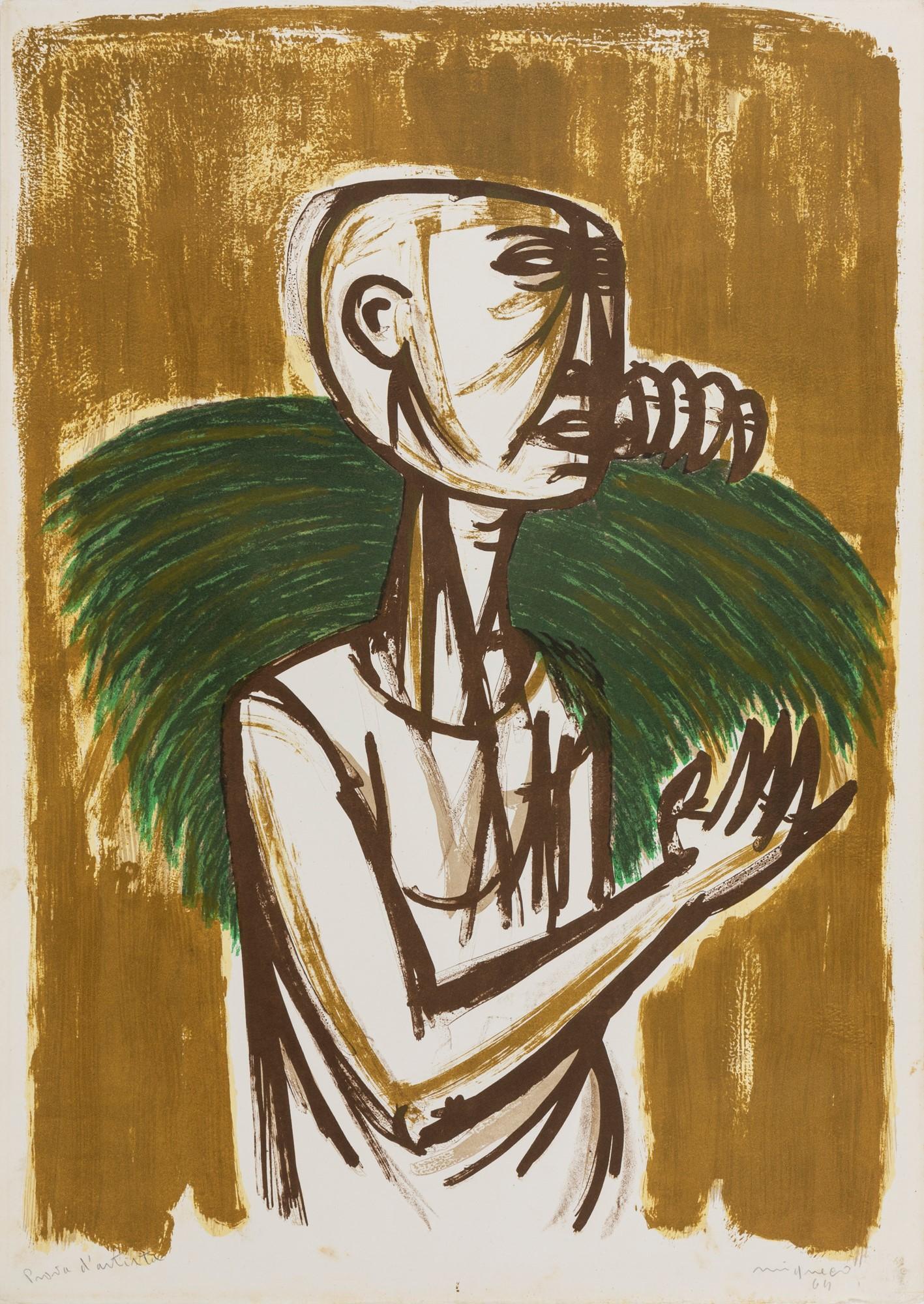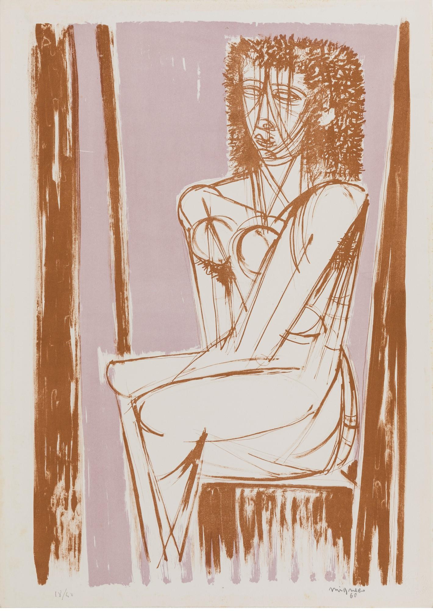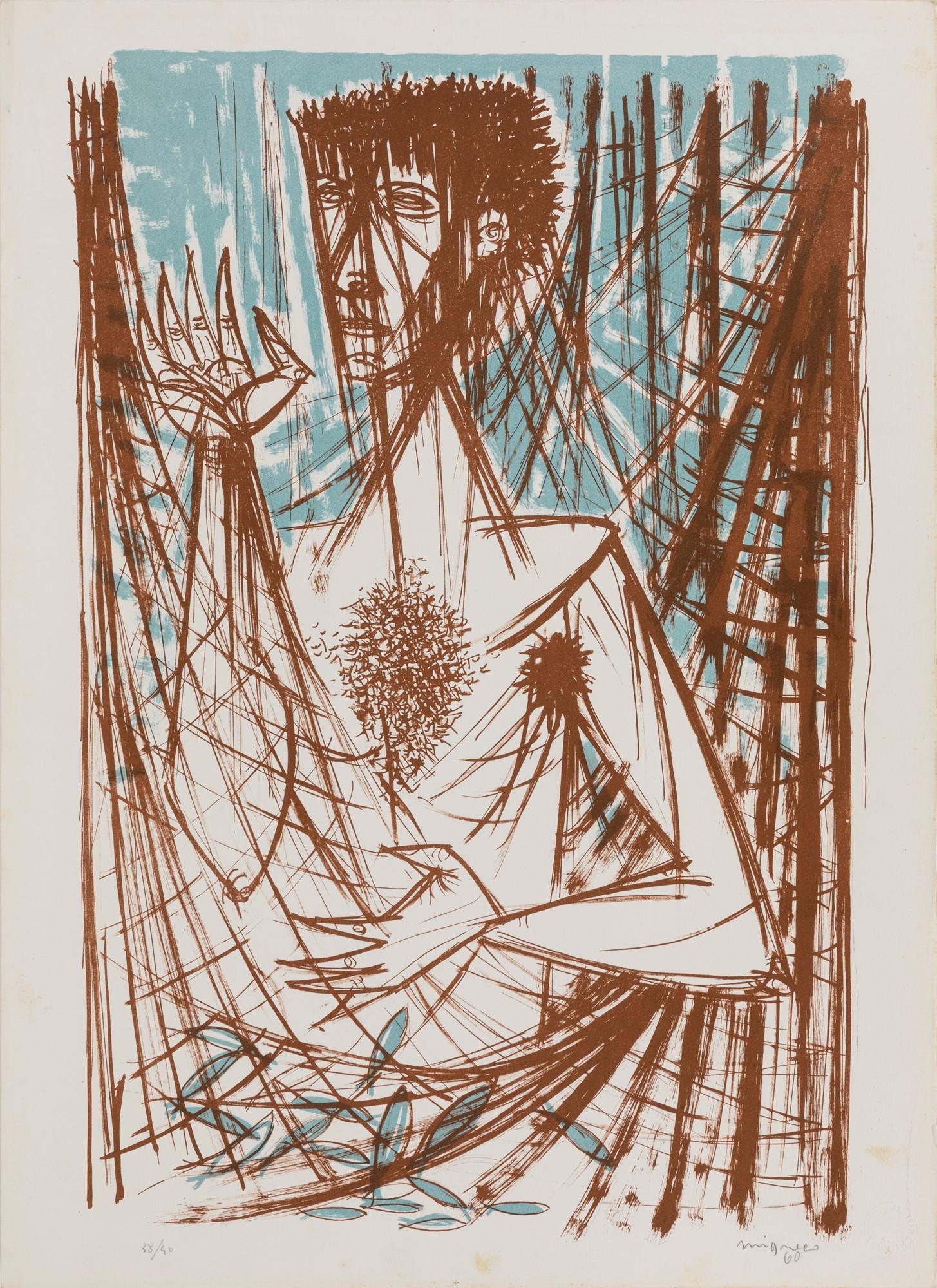 Migneco’s art gained recognition after World War II, and his works were exhibited widely across Italy and Europe. His participation in the Venice Biennale in the 1950s and 1960s cemented his reputation as a leading figure in modern Italian art. Migneco was also a respected illustrator and contributed to publications like Il Politecnico and Corrente magazine.