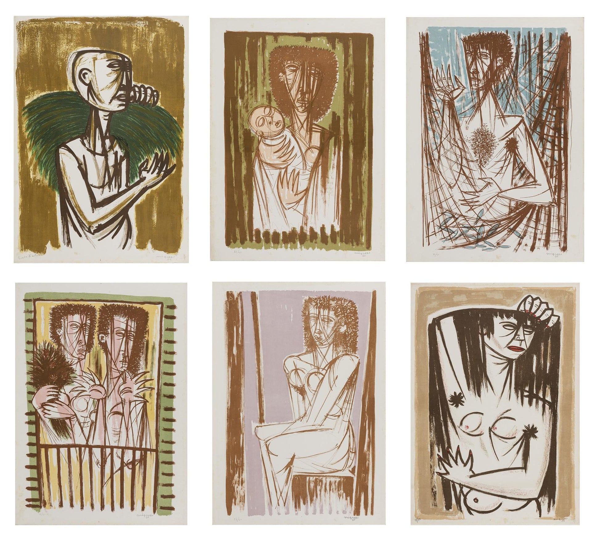 Giuseppe Migneco (Messina 1908-Milano 1997), 6 beautiful colored and signed lithographs