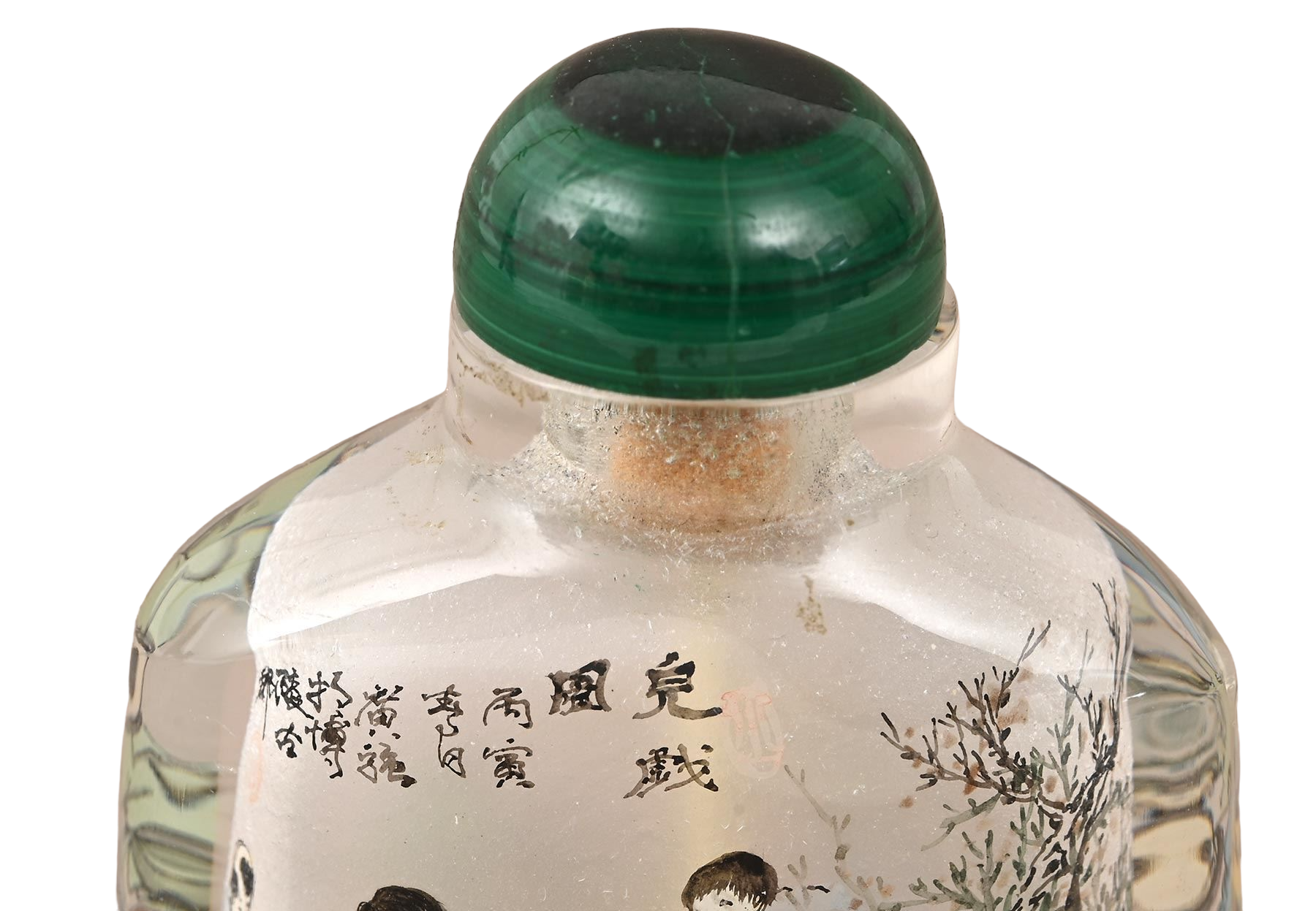A collector snuff bottle with rich hand painted decoration , China, xxth c.