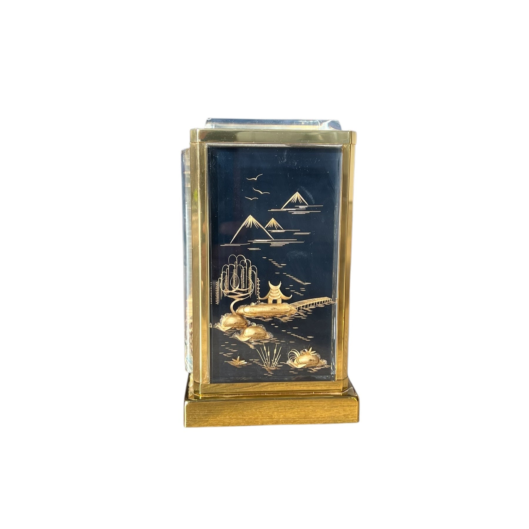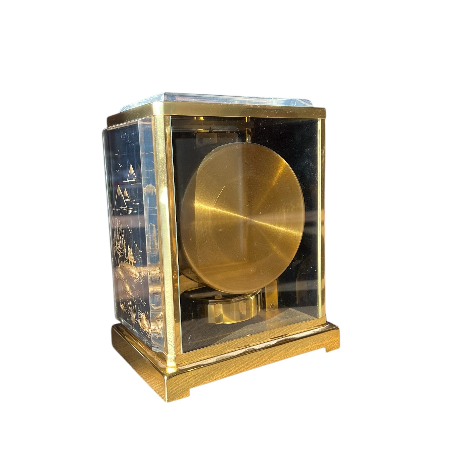 A fine and rare Jaeger-LeCoultre Atmos Marina rectangular, gilt brass “perpetual” table clock wound by differences of atmospheric pressures.