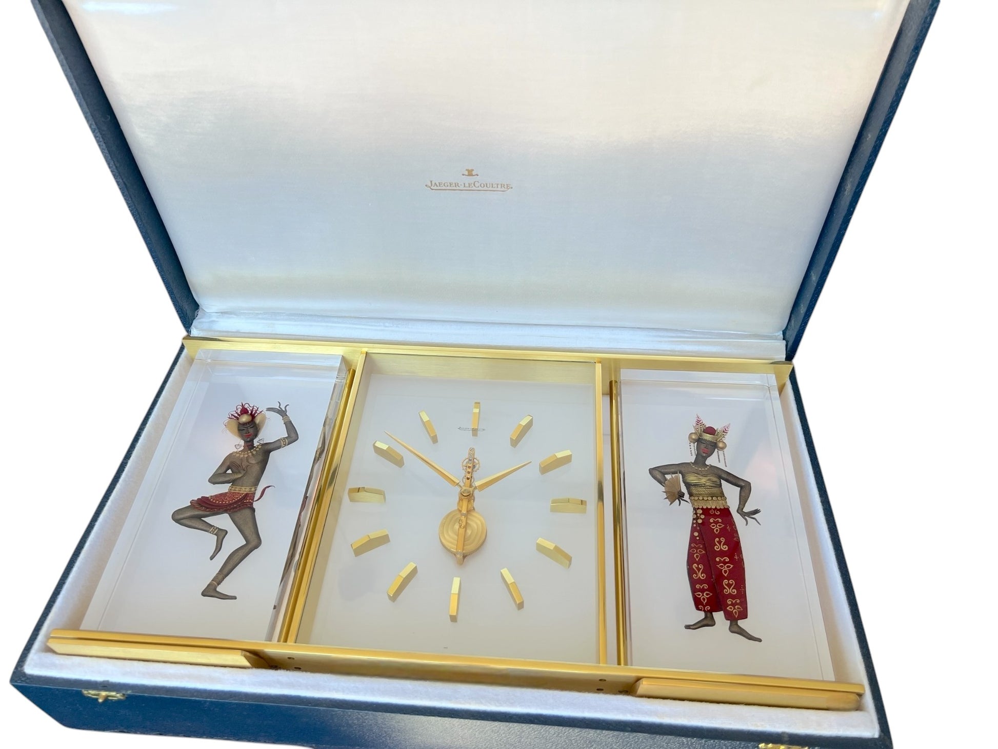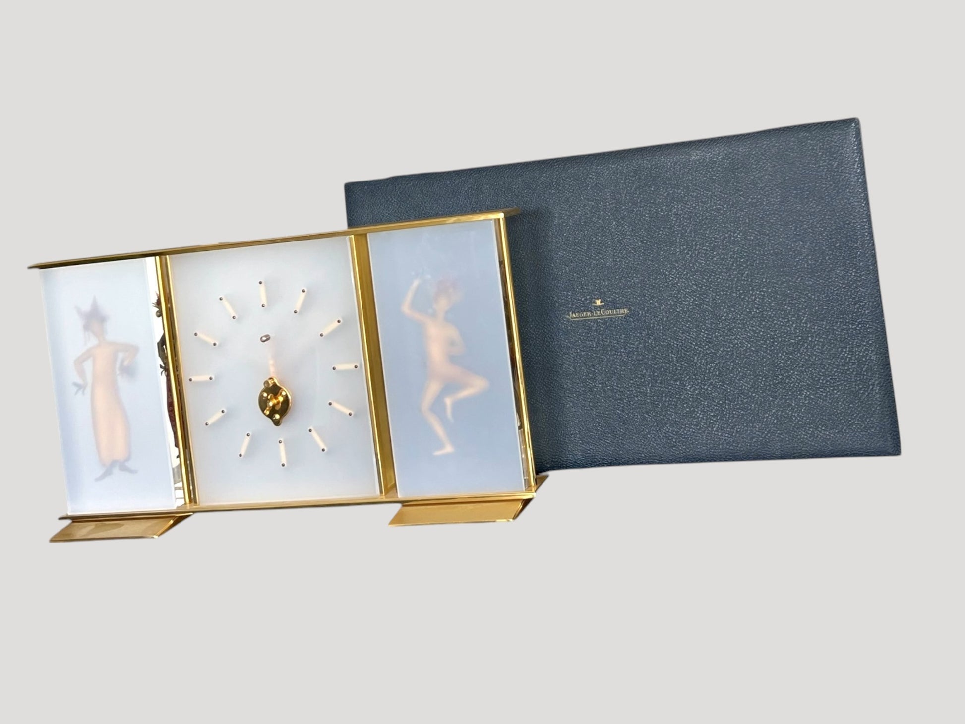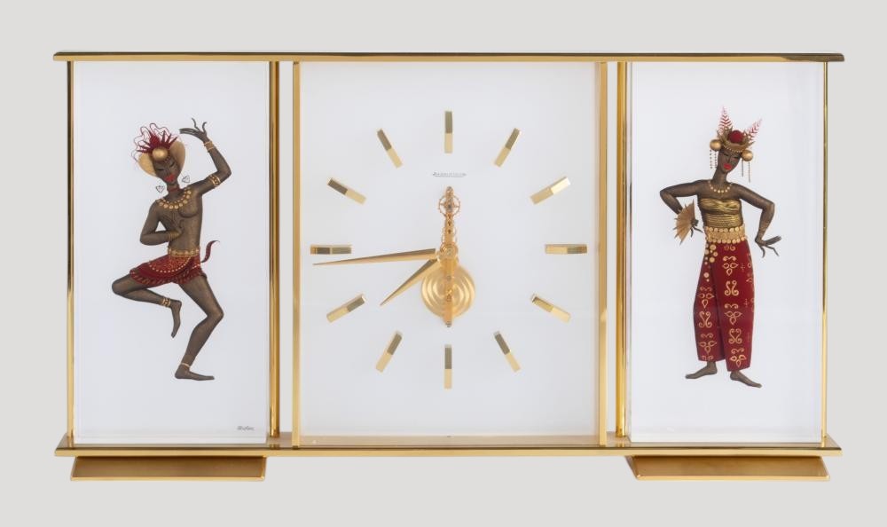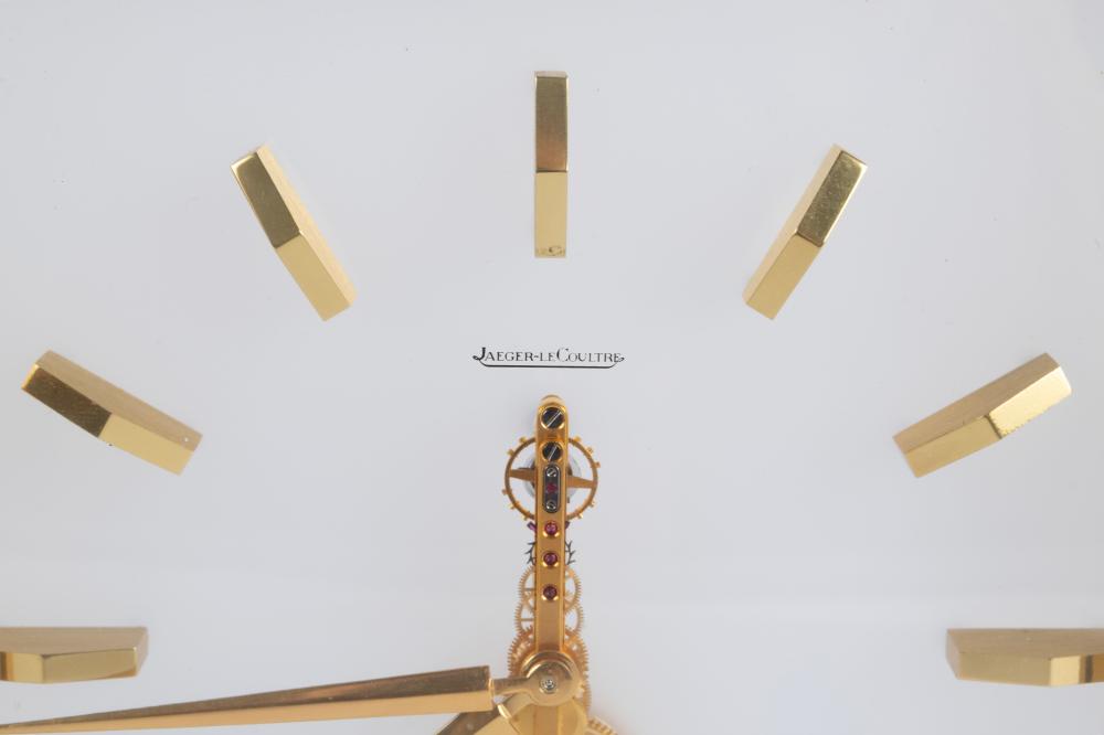 Beautiful unique timepiece and artwork. one of the most beautiful Jaeger LeCoultre desk clock we've seen