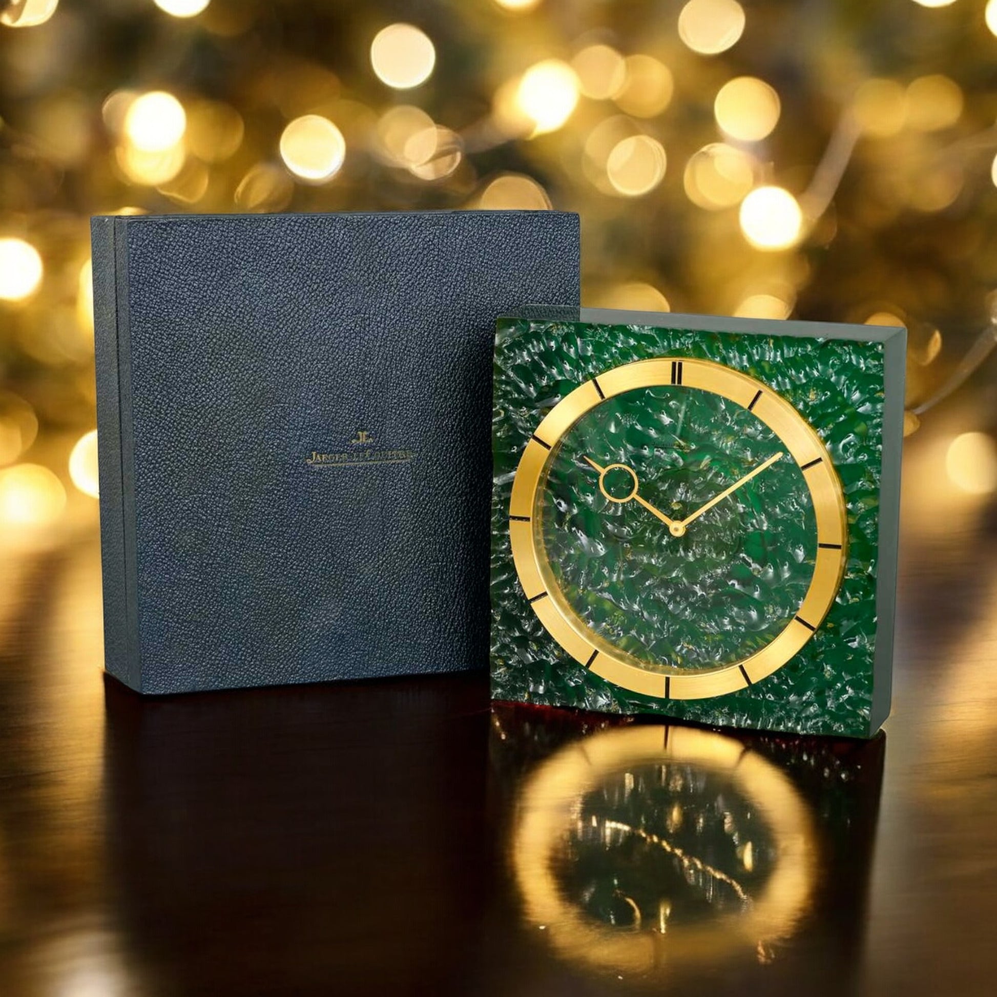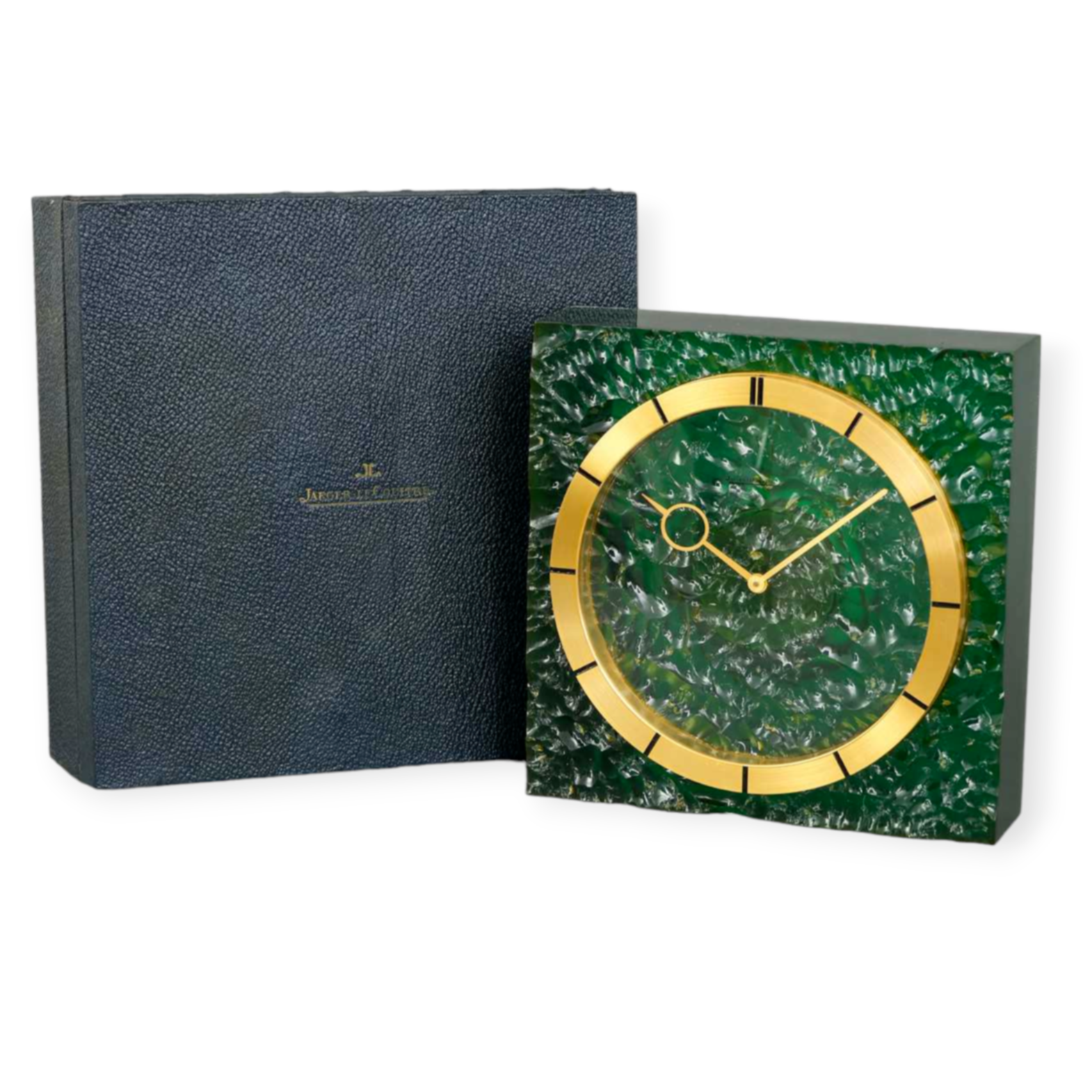 A fine and rare vintage Jaeger LeCoultre Table clock in its original Jaeger LeCoultre box, from circa 1965