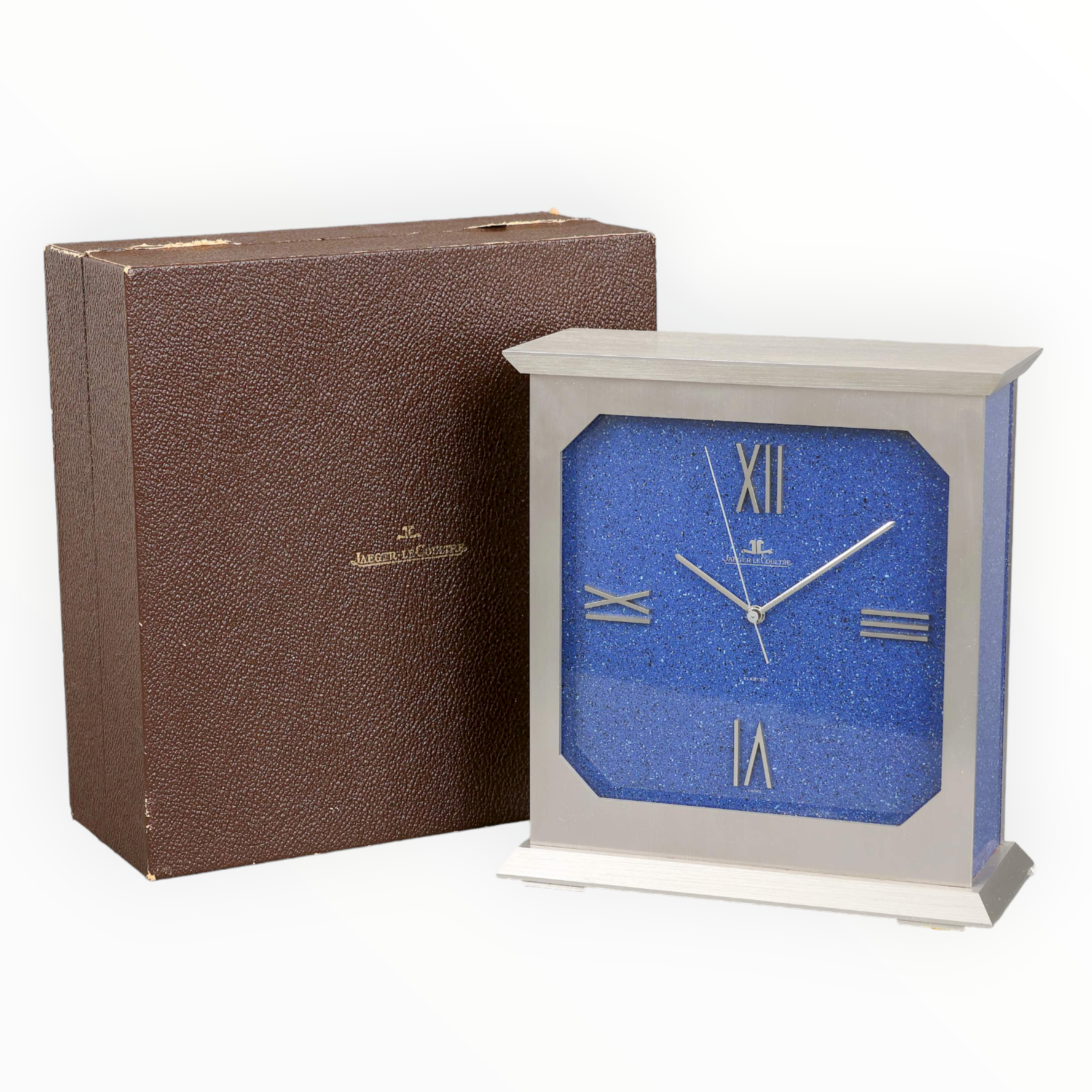 Jaeger-LeCoultre Rare Lapis Lazuli Big Table Desk Clock Tischuhr Horloge in its original box ca 1970'