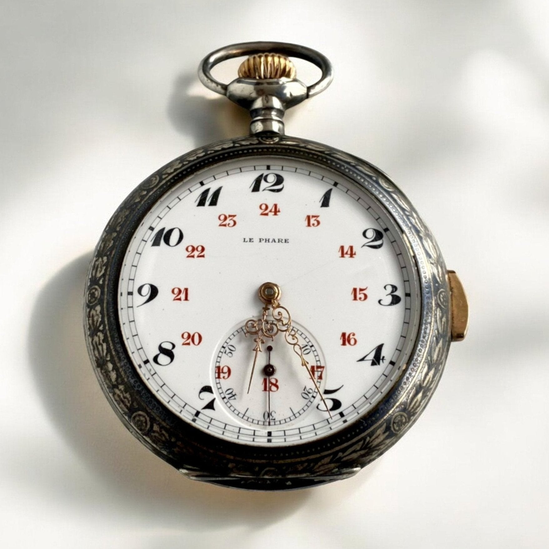 A fine and extremely rare Le Phare pocket watch from ca 1910'
