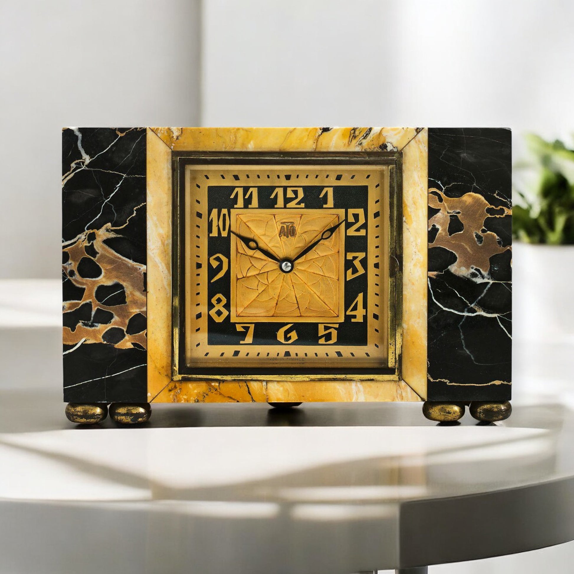 Leon Hatot ATO Large Marble Desk Clock Horloge Art-Deco 1930' Rare Collector'