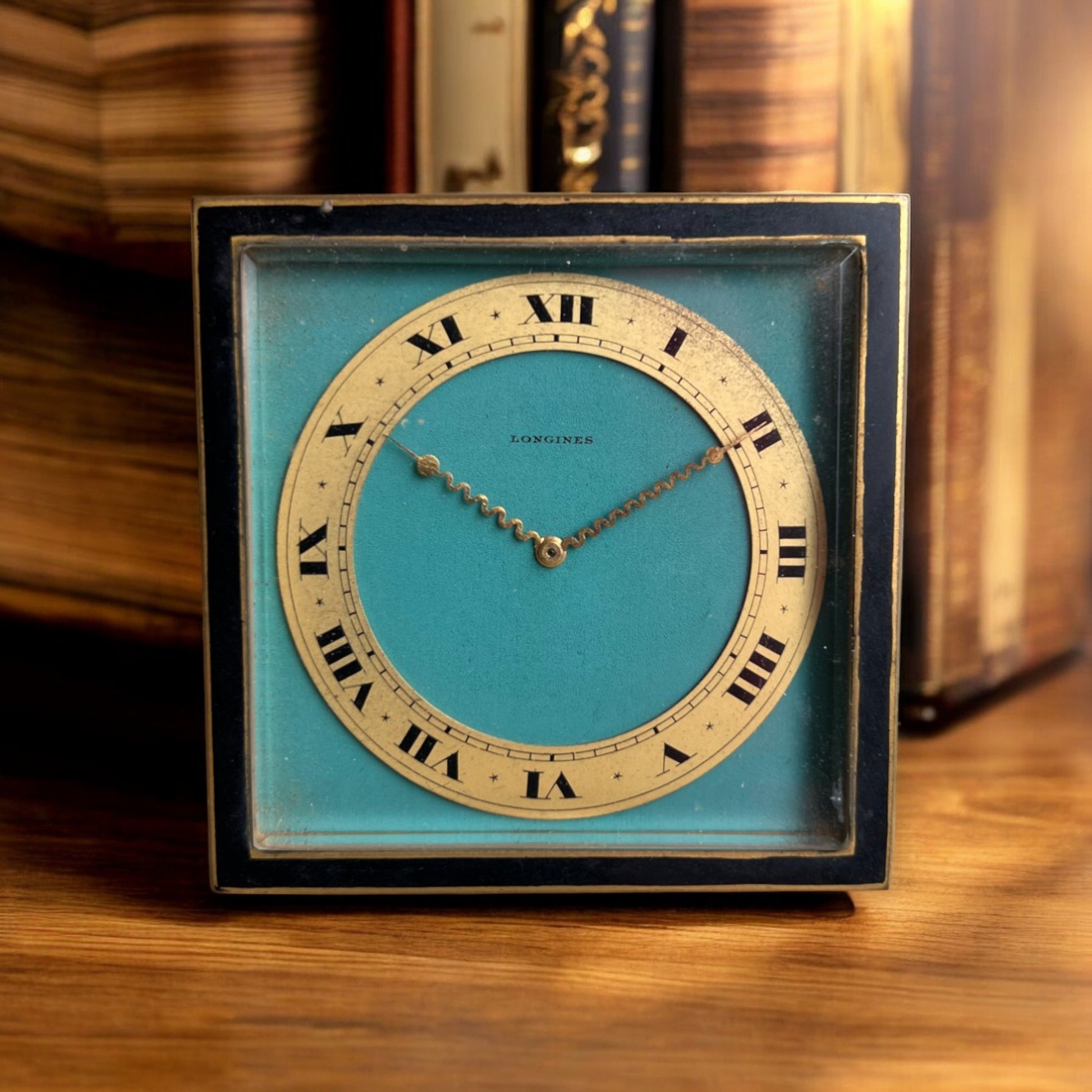 Longines Fine & Rare Pendulette / Table Clock Tiffany Color Dial Beautiful Patina Unique Piece