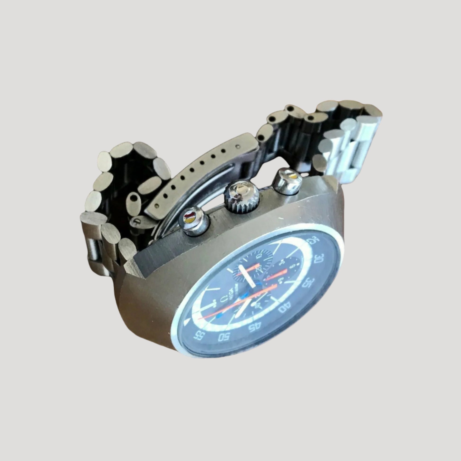The Omega Flightmaster 145.026 is an iconic pilot’s chronograph from the early 1970s, designed specifically for professional aviators. A variation of the original Flightmaster 145.013, this model features an updated Caliber 911 movement with a running seconds subdial instead of the 12-hour counter, making it a distinctive version in the Flightmaster series.