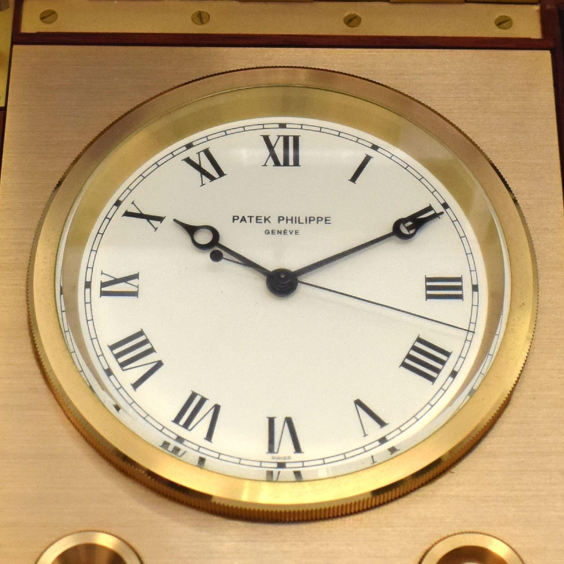 A fine and Rare Patek Philippe Naviquartz Table clock in its original Patek mahogany case