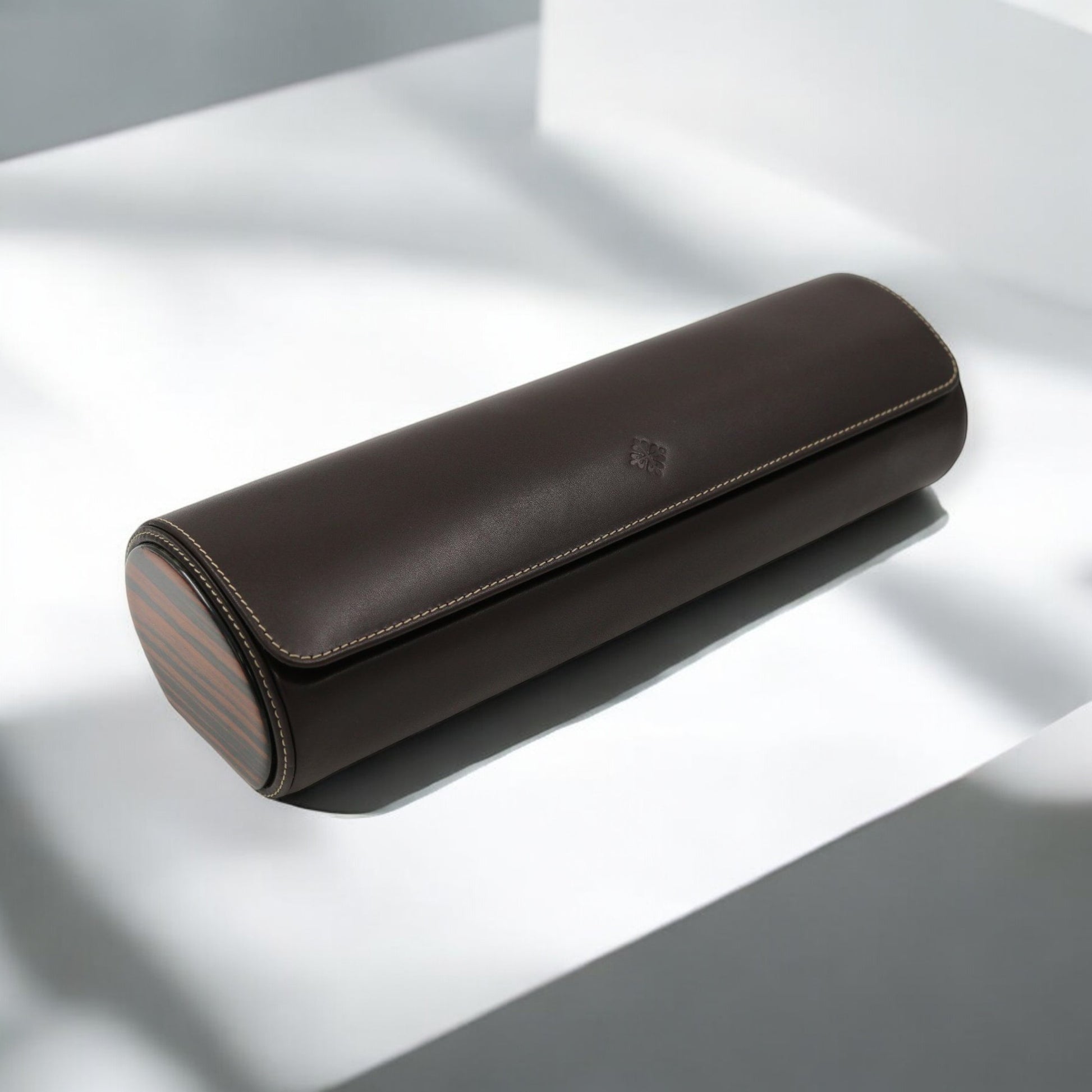 Patek Philippe Rare’ New Travel Pouch / Case / Etui / Box in brown leather & wood for 4 watches