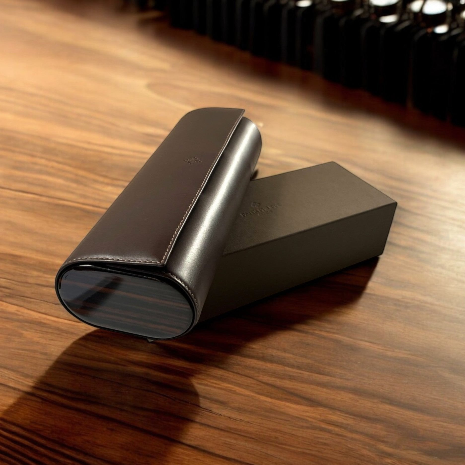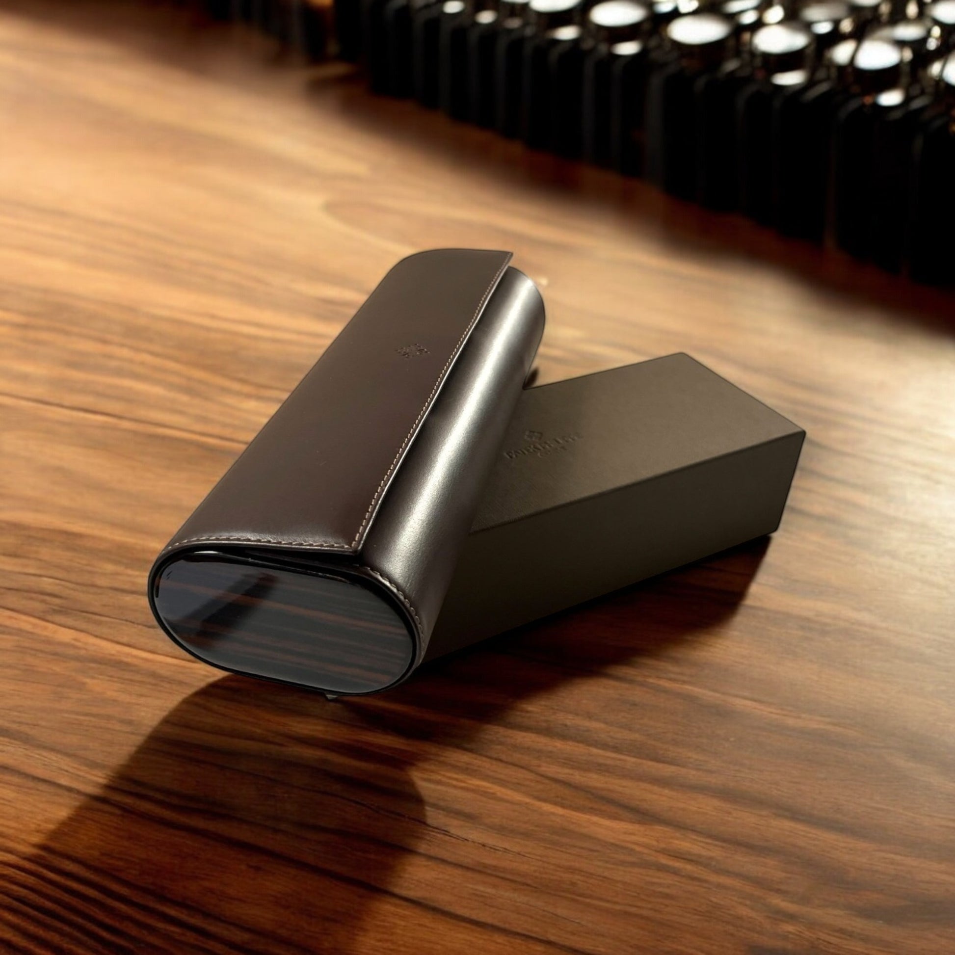 Patek Philippe Rare’ New Travel Pouch in brown leather & wood for 4 watches in its original Patek box Rare