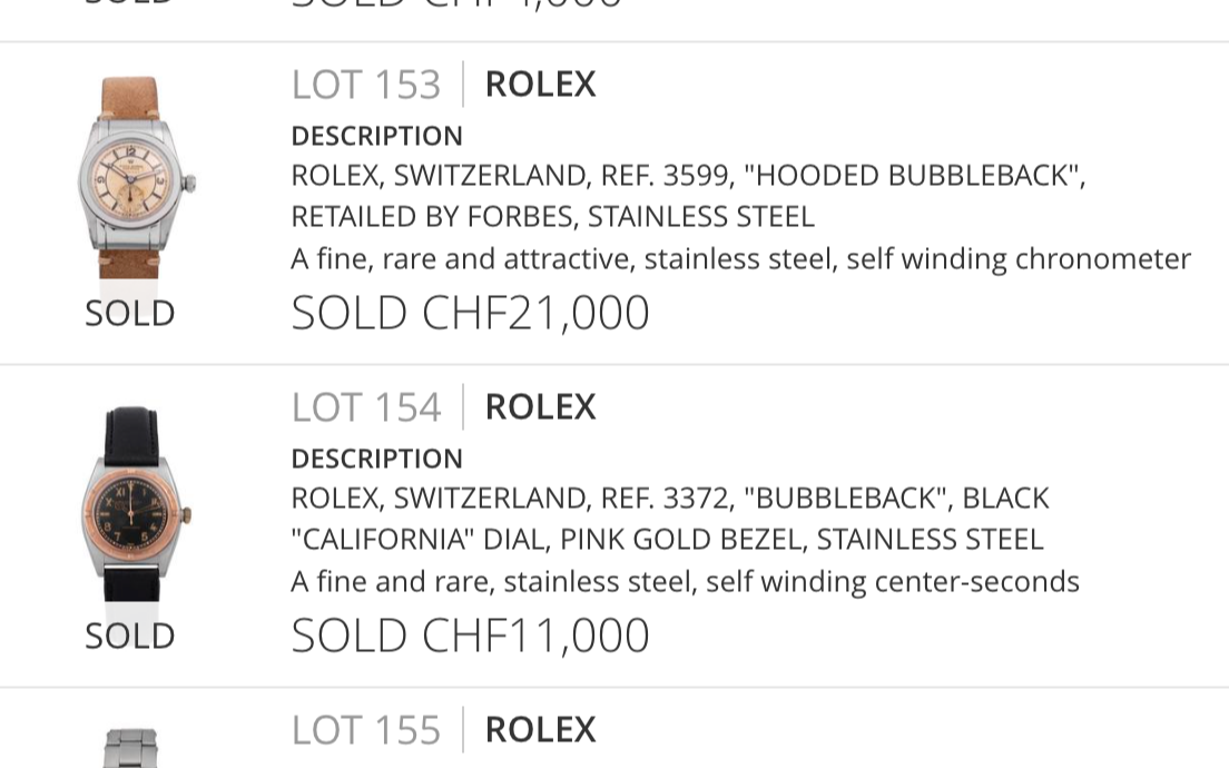 The "Bubble Back" nickname comes from the protruding, rounded caseback, which accommodated the larger rotor mechanism used in early automatic movements.