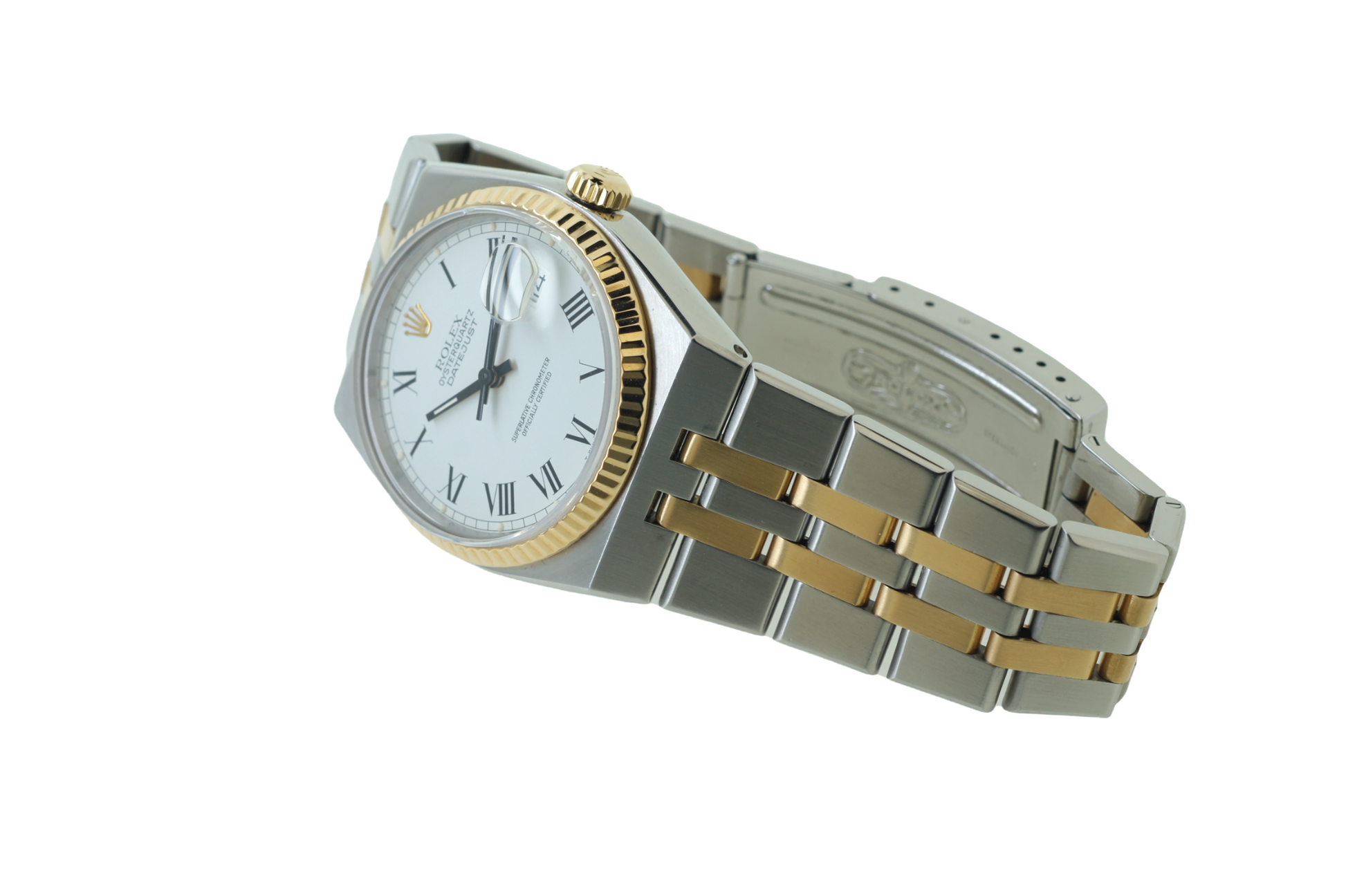 Case & Dial: Oyster, steel & gold, 36 x 42 mm, "Buckley" White Roman Numbers dial, sapphire glass