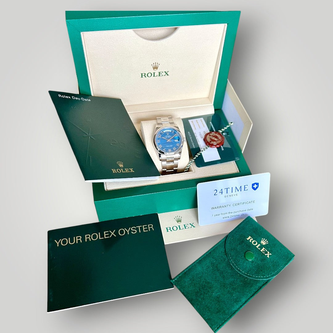 Rolex Day-Date 18K White Gold Blue Wave Dial Rare Ref. 118239, Full Set