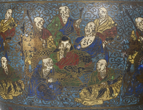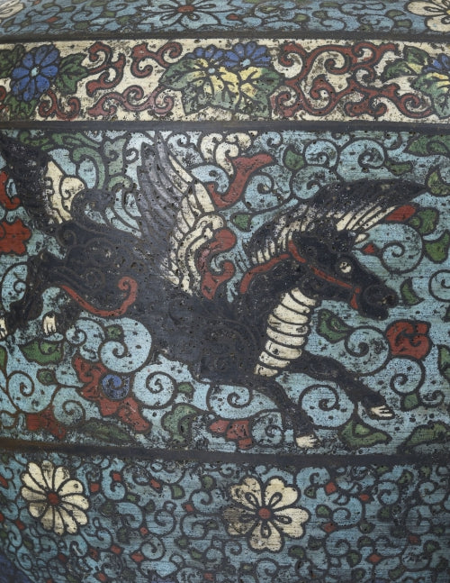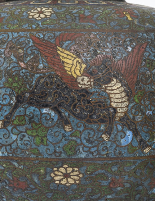 A fine & rare set of 3 marvelous ancient champlevé enamel vases, Japan, 20th century