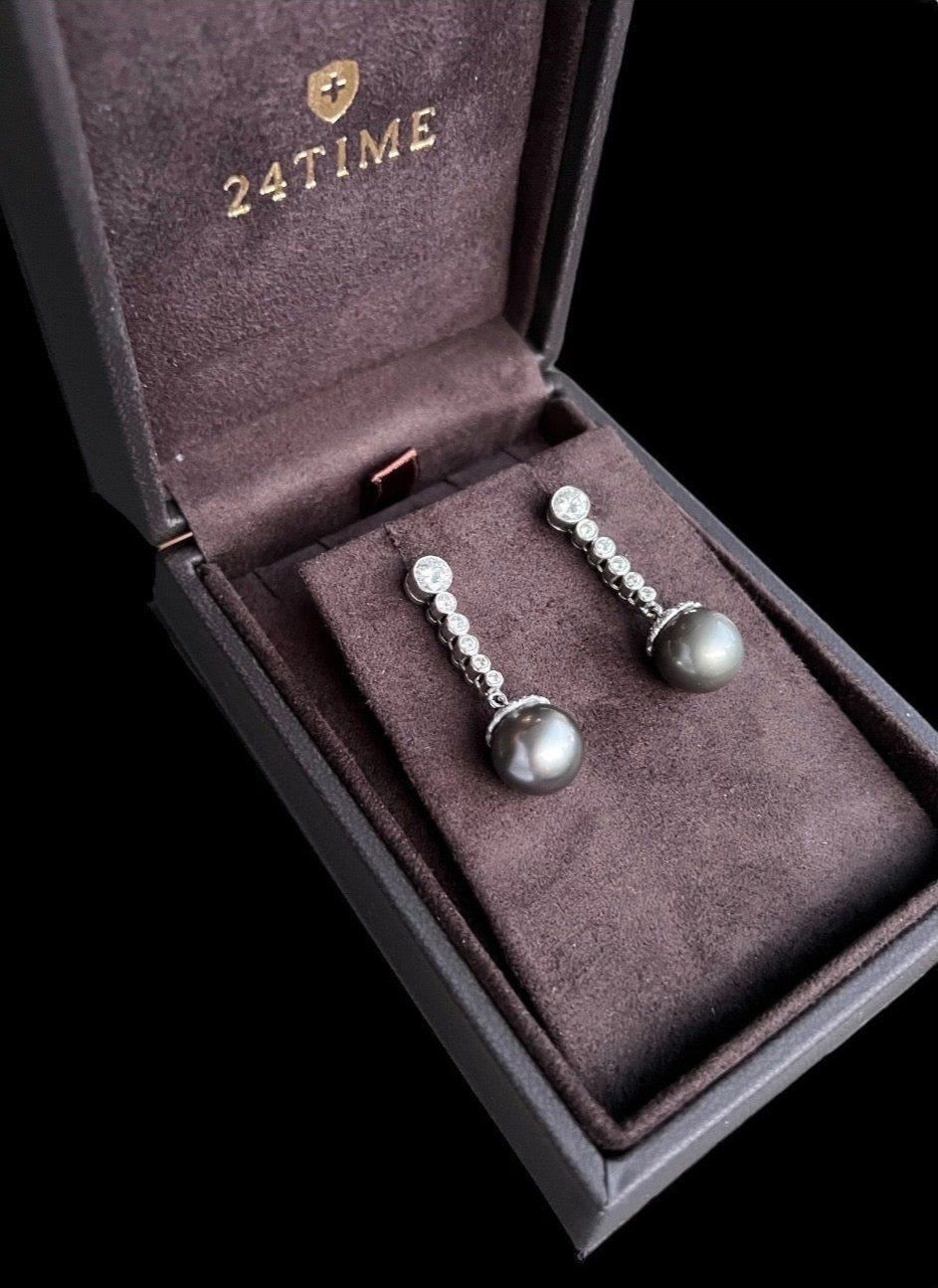 Tahiti Pearl & Diamonds 18k White Gold Earrings