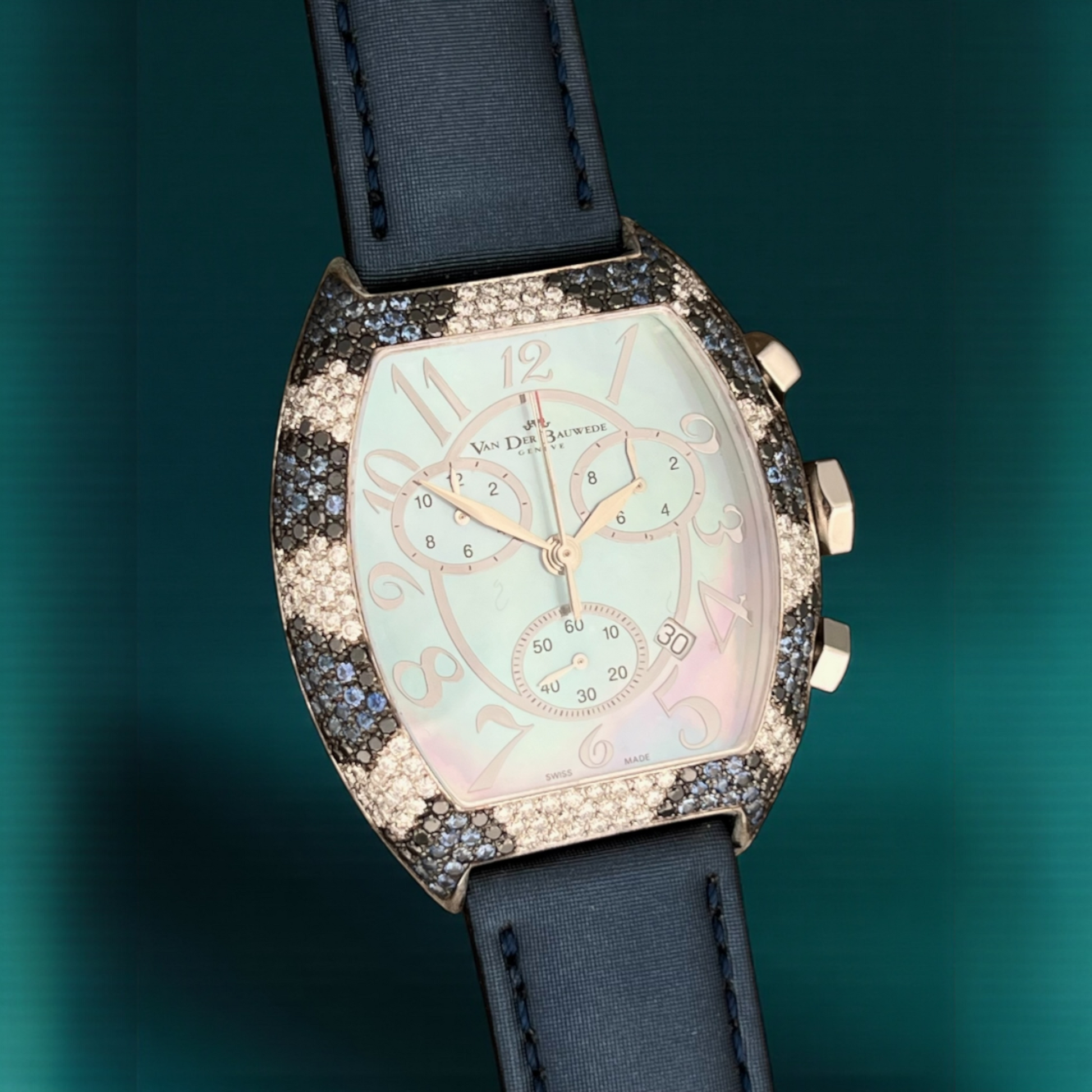 Van der Bauwede Magnum Chronograph Blue Saphirs & White and Black Diamonds NEW