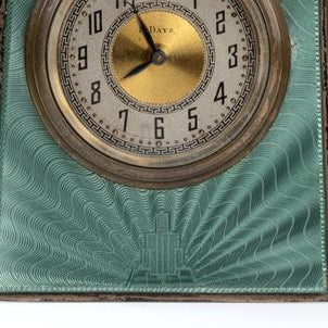 William Neale & Son Art Déco George VI period sterling silver enameled table clock Rare, 1934